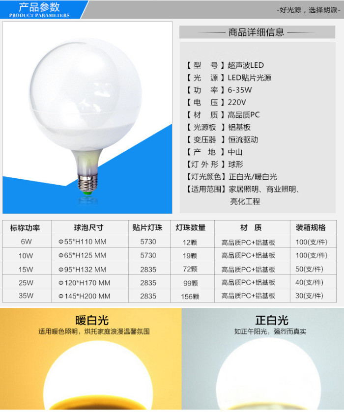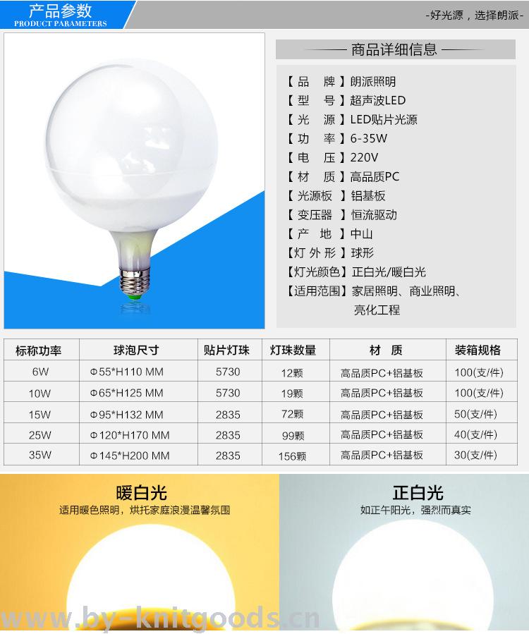 外贸专供新款LED超声波焊接 防水球泡灯 6W -35w