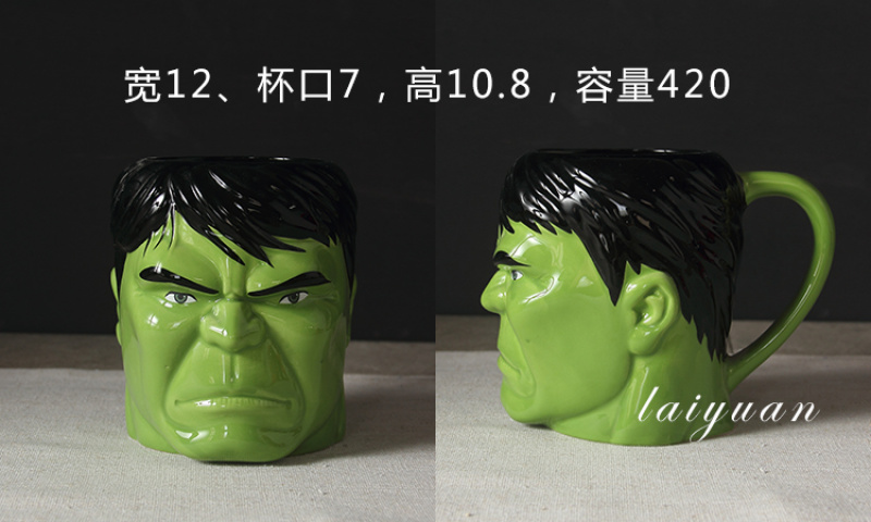 创意3D英雄联盟陶瓷马克杯绿巨人杯子钢铁侠蜘蛛侠超人杯子