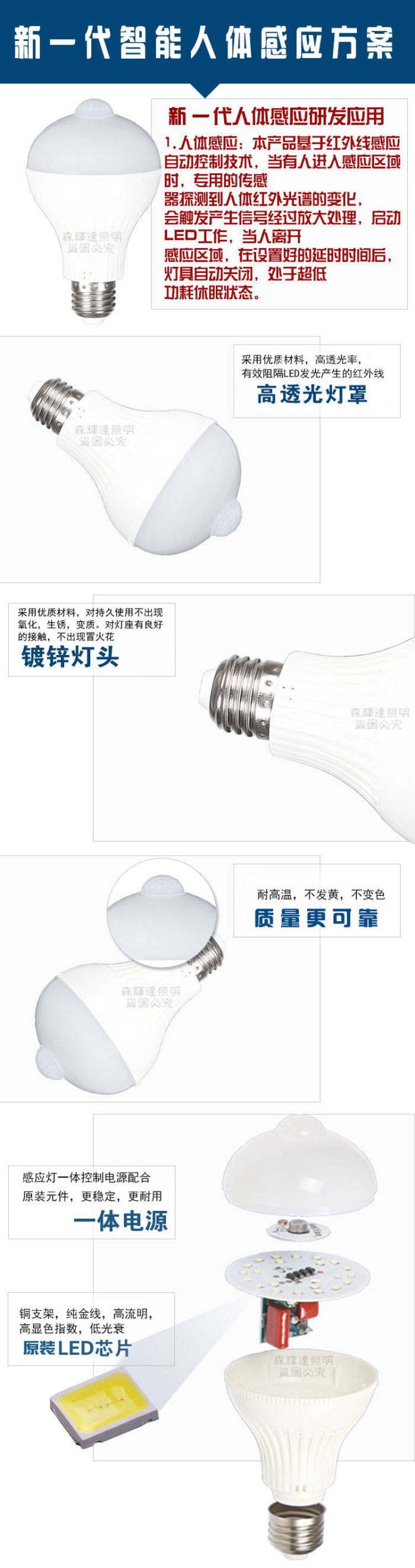 | 7w sound and light control bulb(7w声光控球泡灯) | USD $1.34 | 1000 piece available |