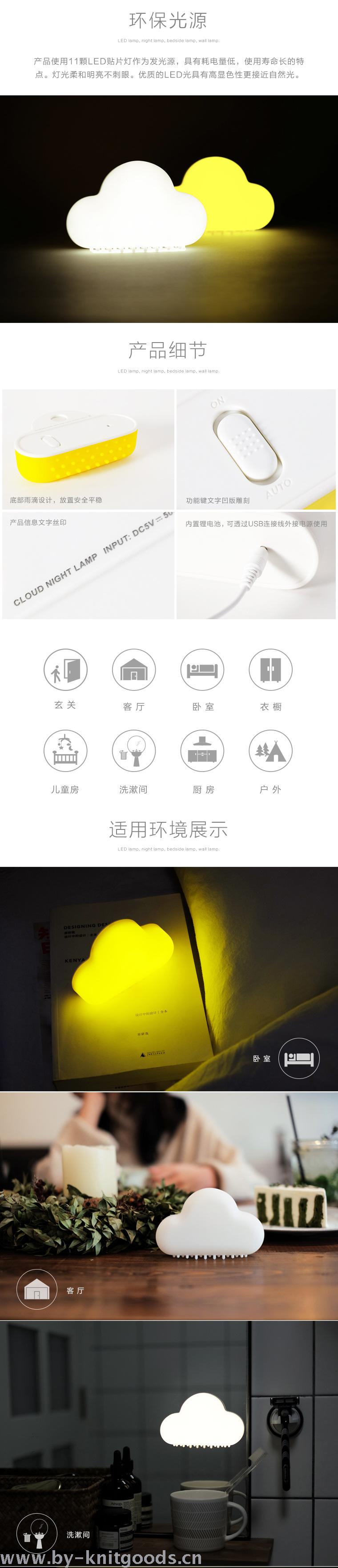 外贸专供云朵小夜灯USB声控光控充电节能灯卧室床头触摸感应灯