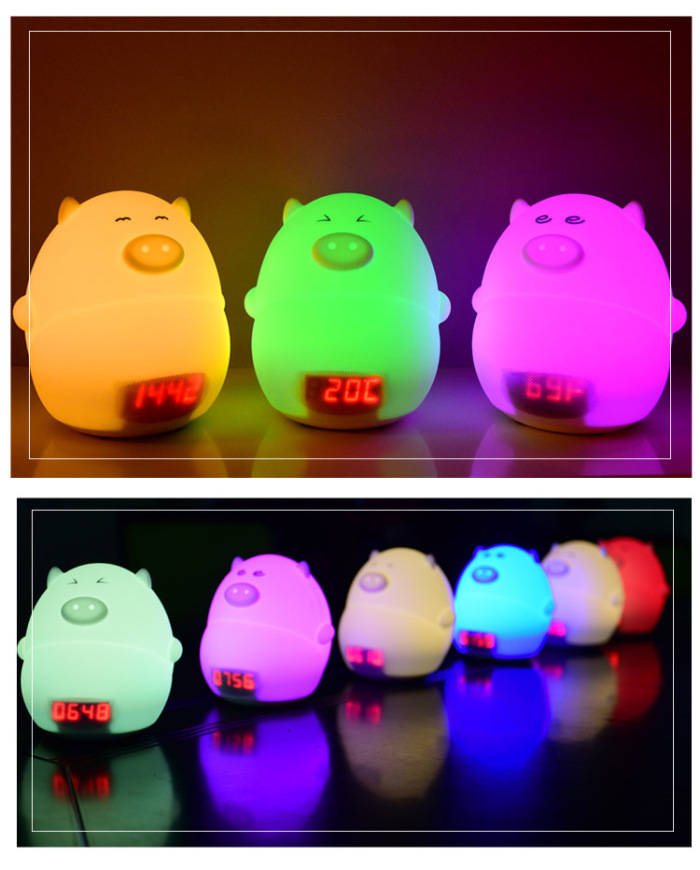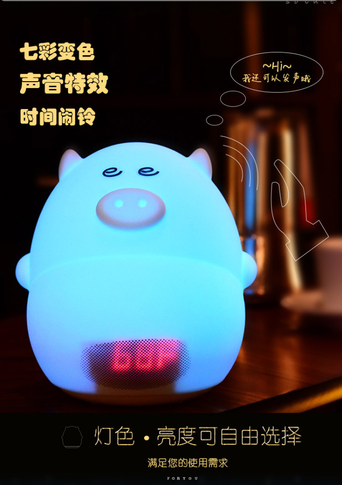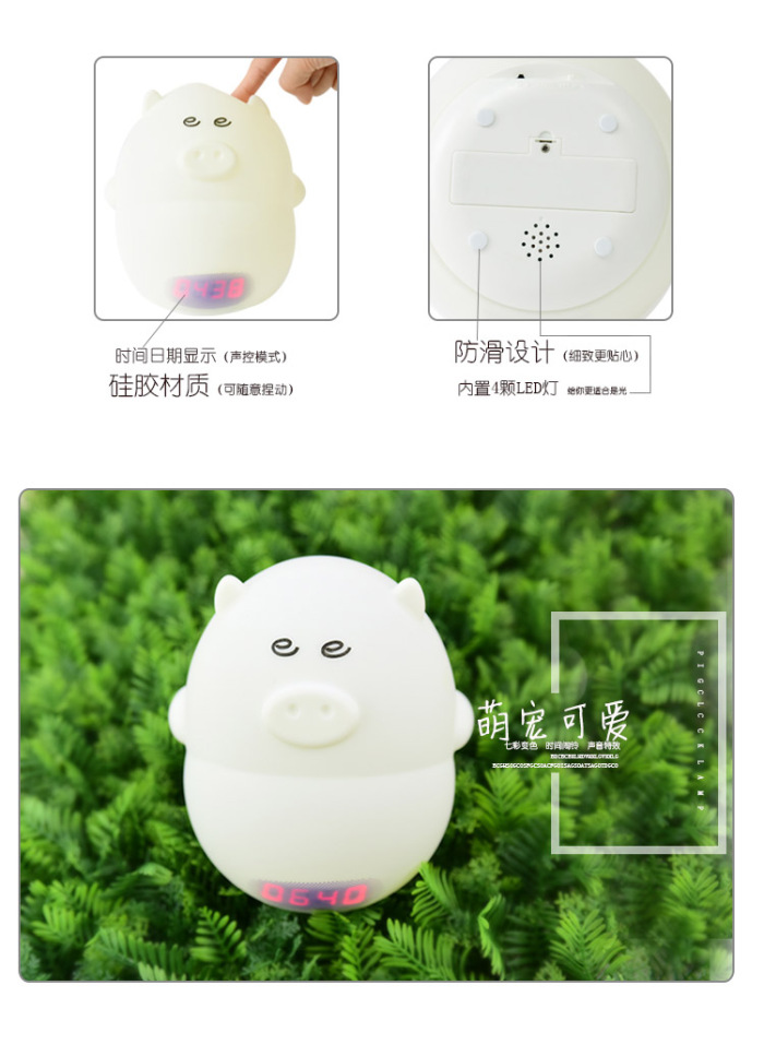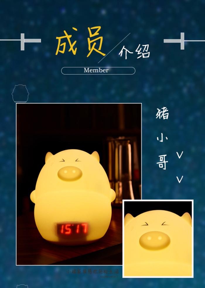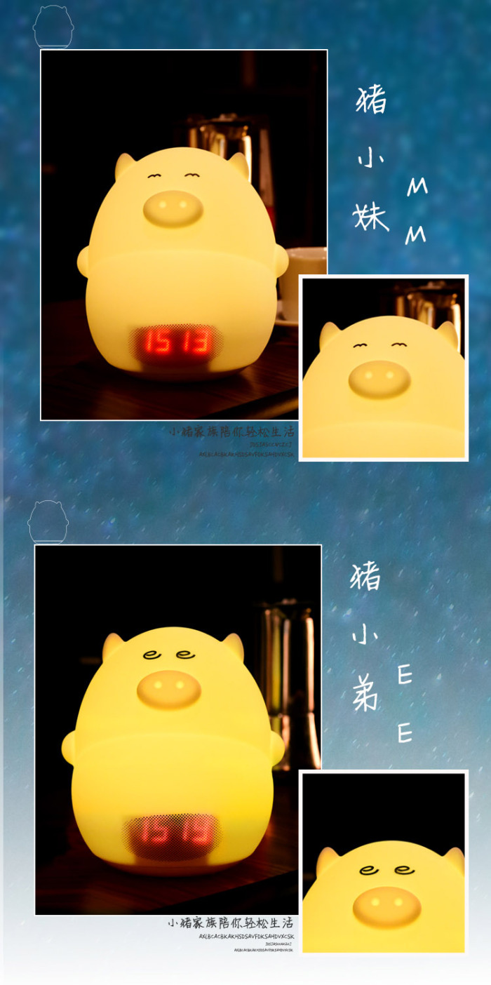七彩可爱拍拍猪灯风情闹钟猪猪小哥 猪小妹 猪小弟创意硅胶灯