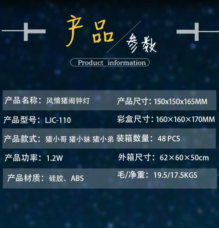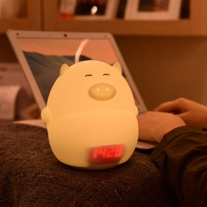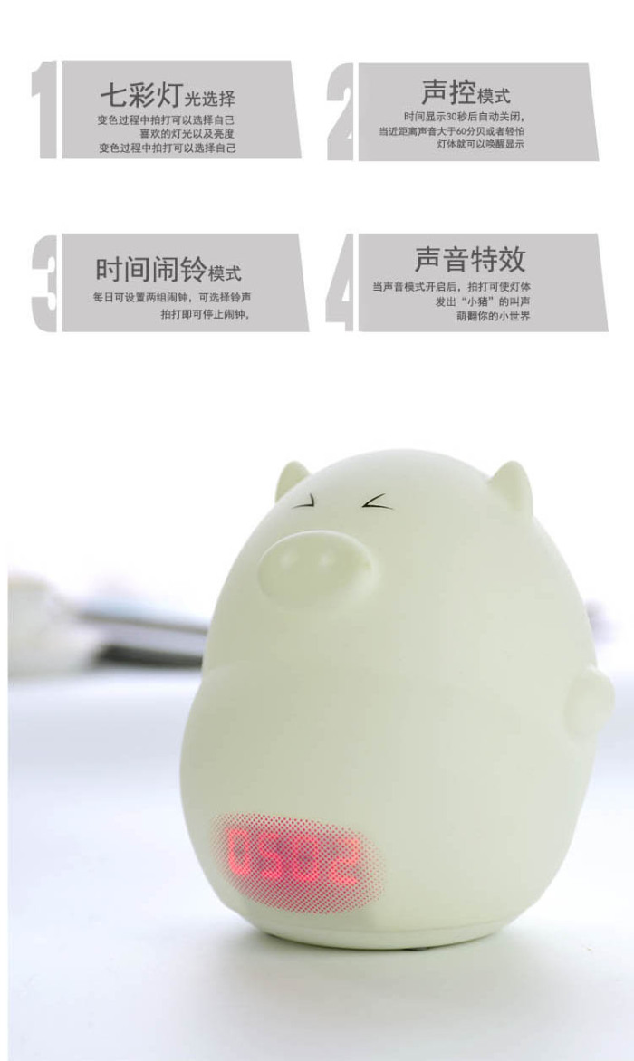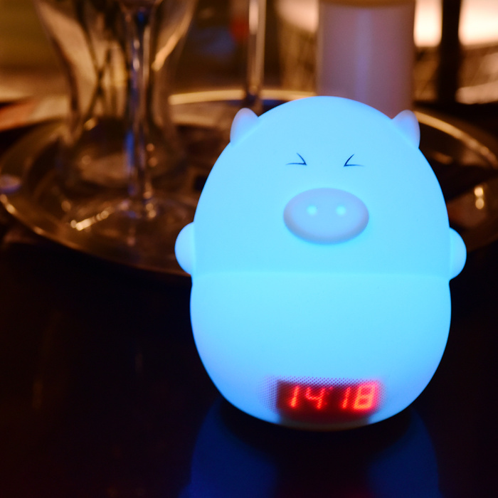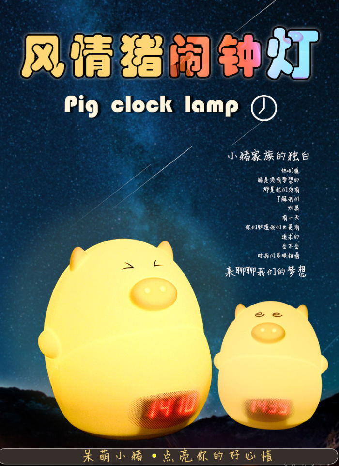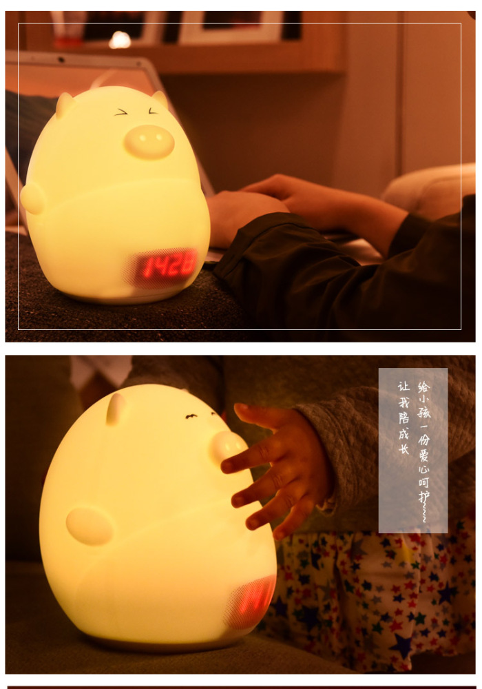 七彩可爱拍拍猪灯风情闹钟猪猪小哥 猪小妹 猪小弟创意硅胶灯