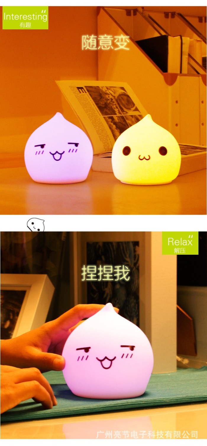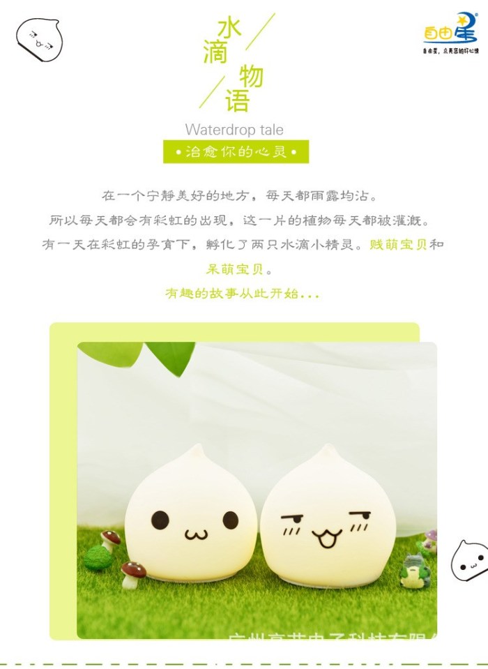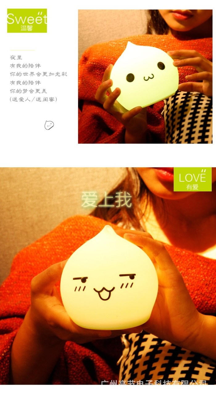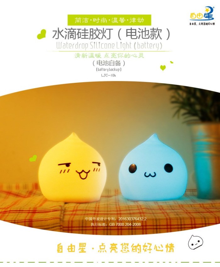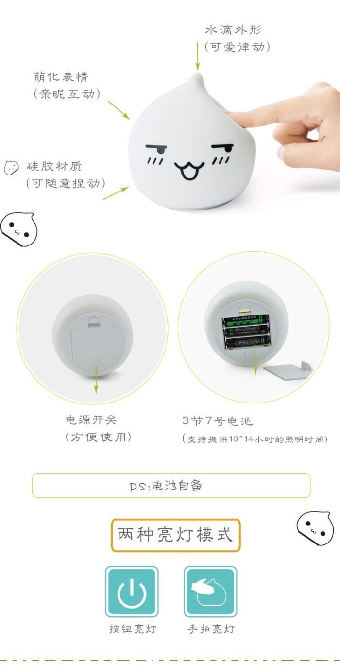 迷你水滴硅胶小夜灯 创意七彩桌面床头氛围灯拍拍灯礼品灯电池款
