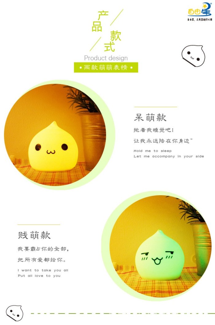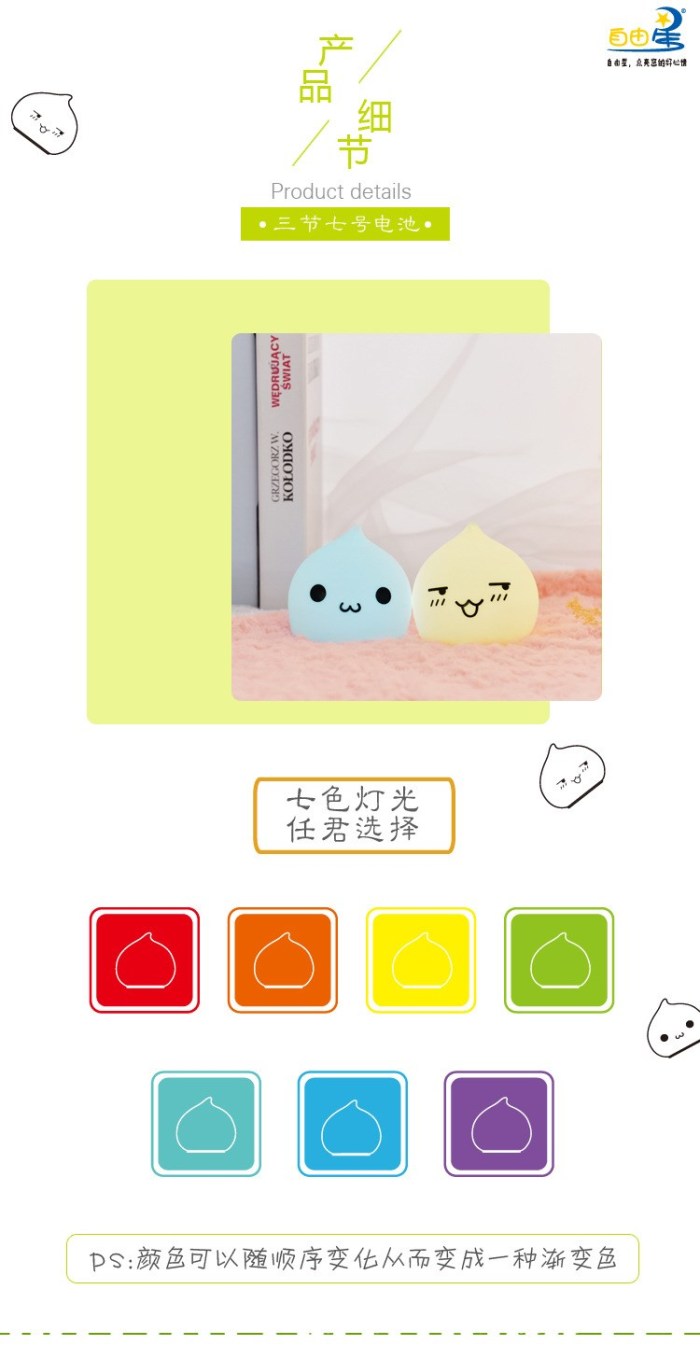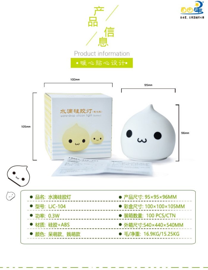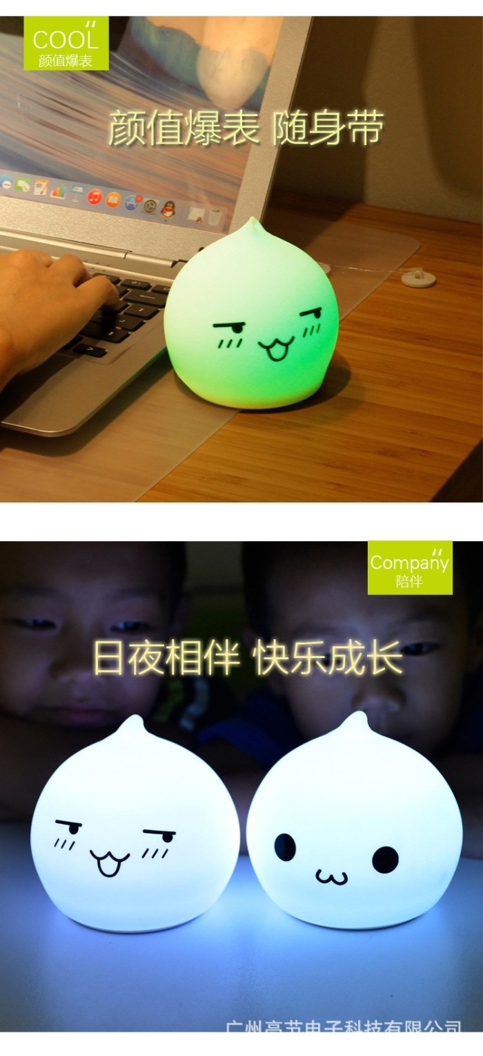 迷你水滴硅胶小夜灯 创意七彩桌面床头氛围灯拍拍灯礼品灯电池款