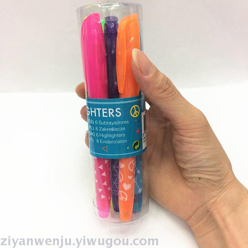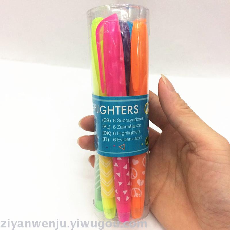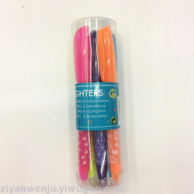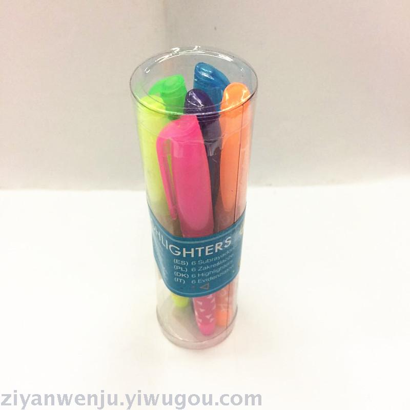 荧光笔6支桶装荧光笔