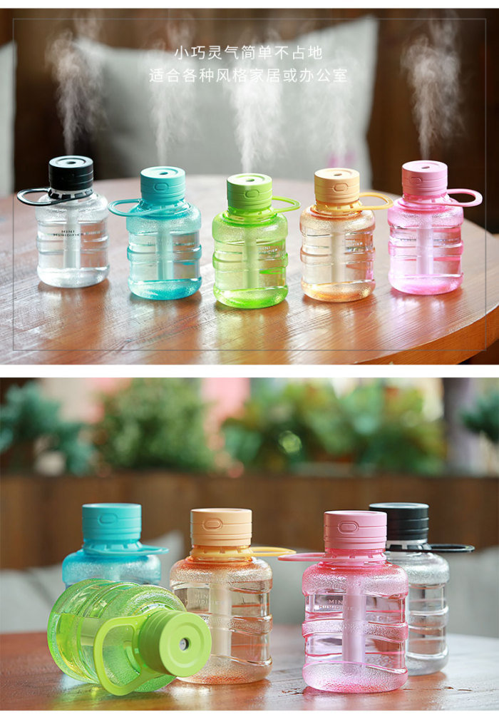 迷你水桶加湿器桶装水usb加湿器桌面空气雾化器静音夜灯加湿器