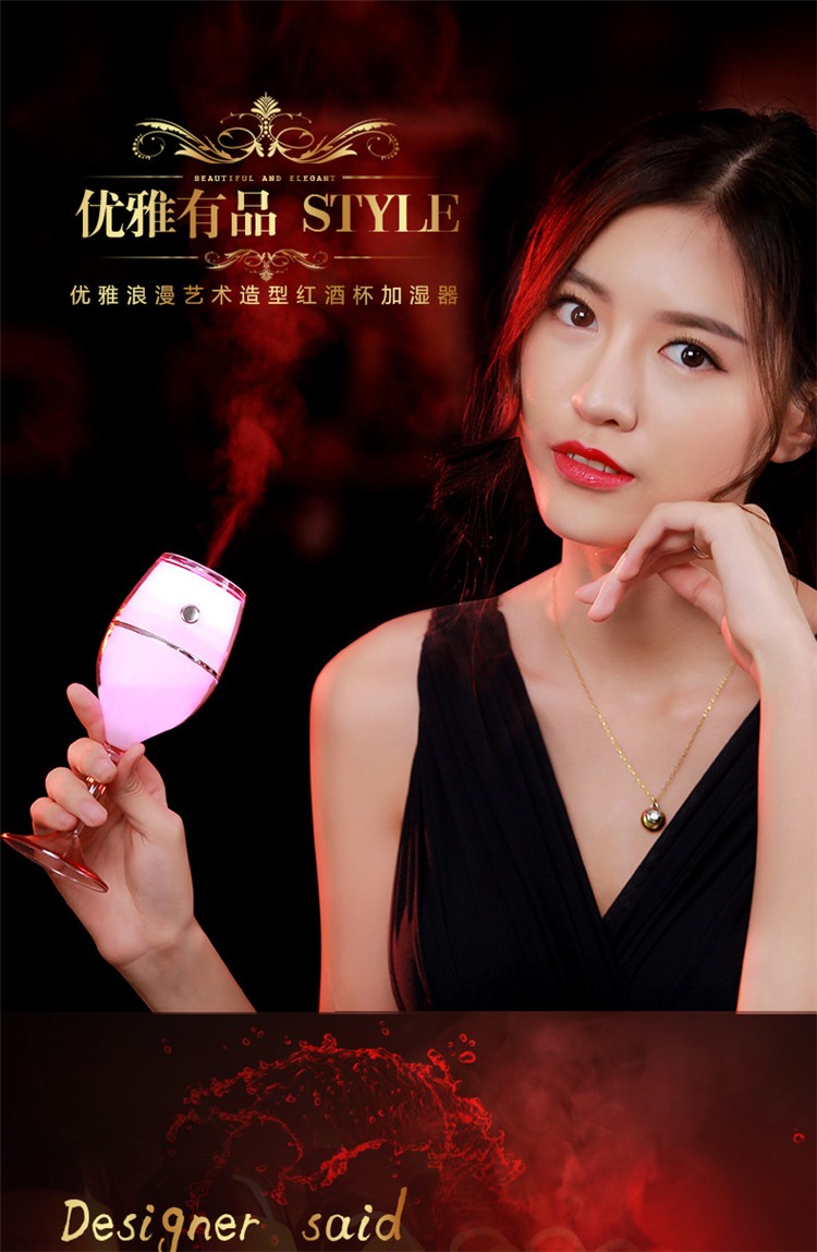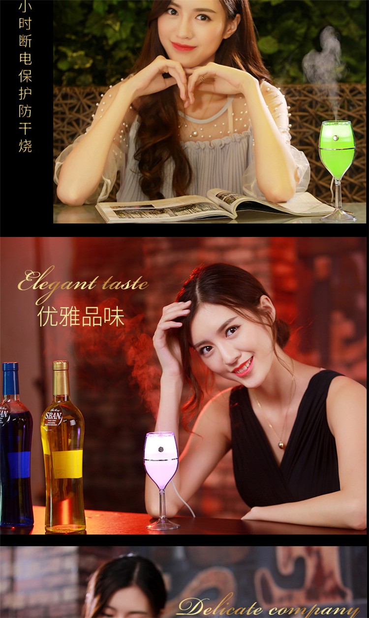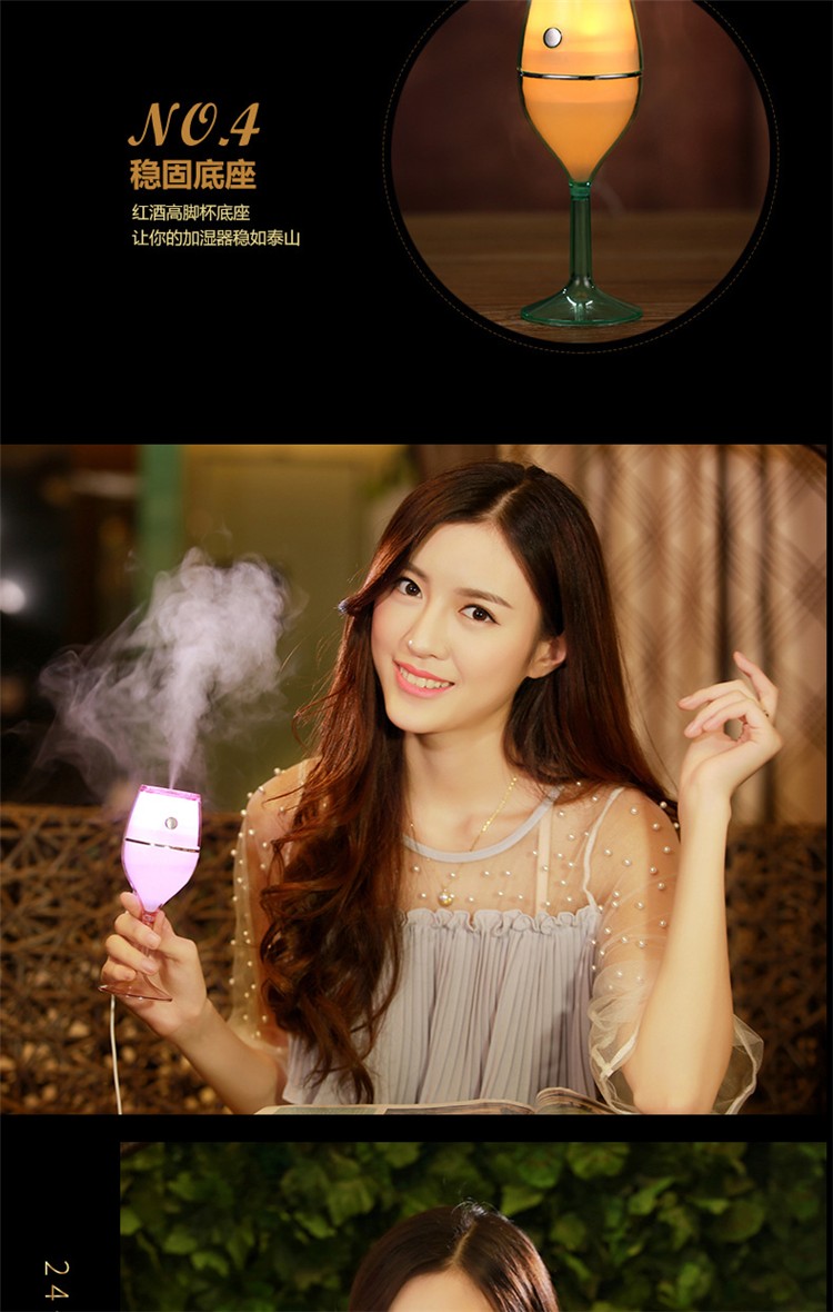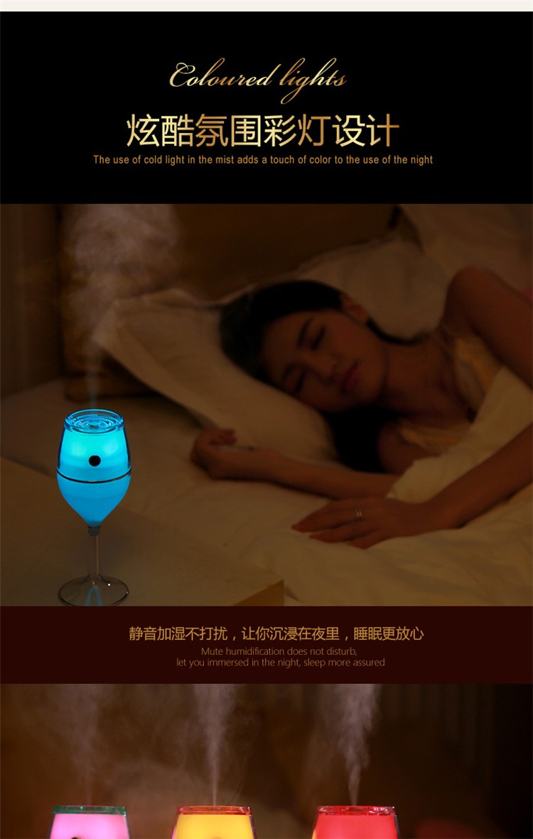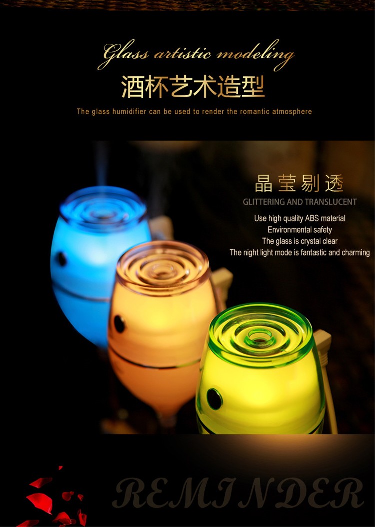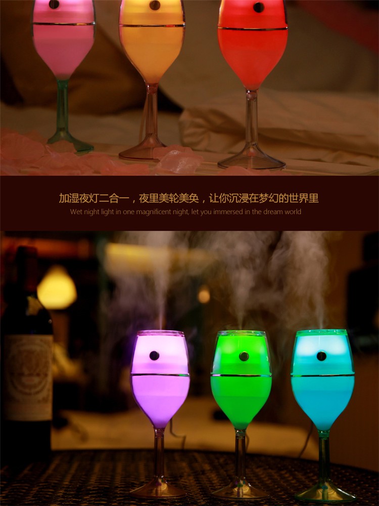USB迷你红酒杯加湿器创意七彩夜灯加湿香薰器温馨空气净化器