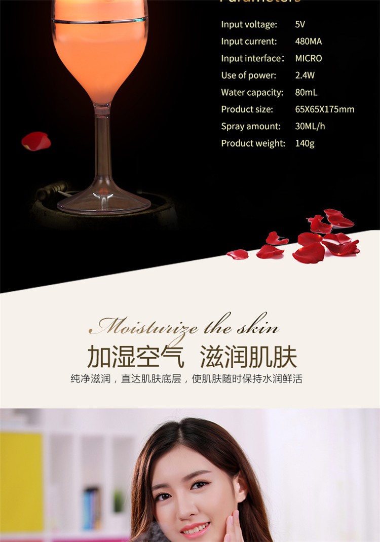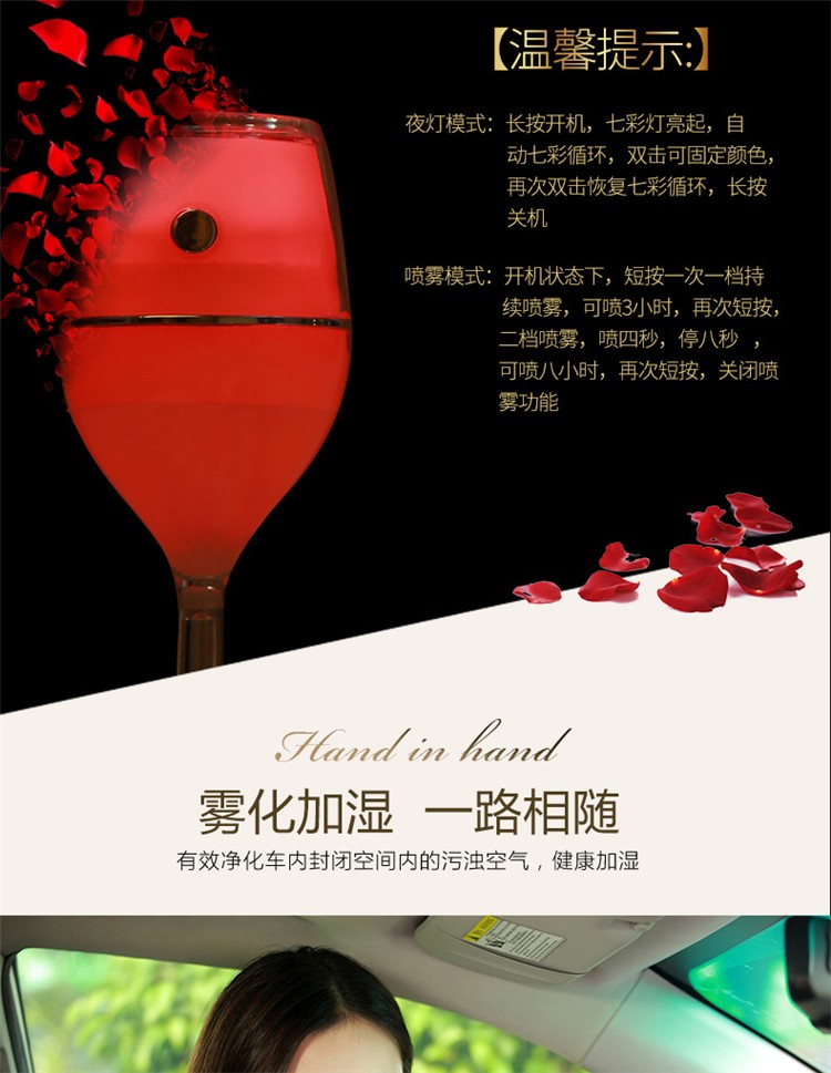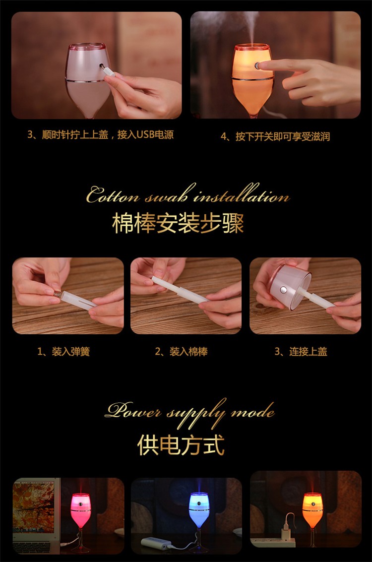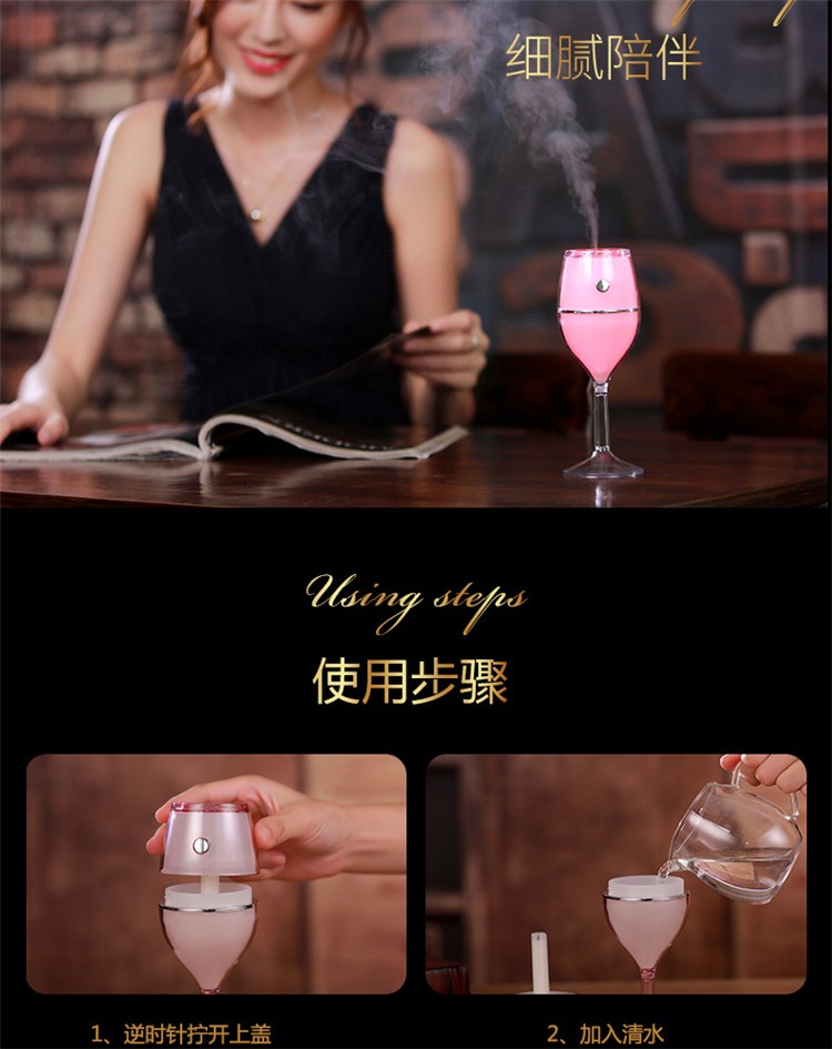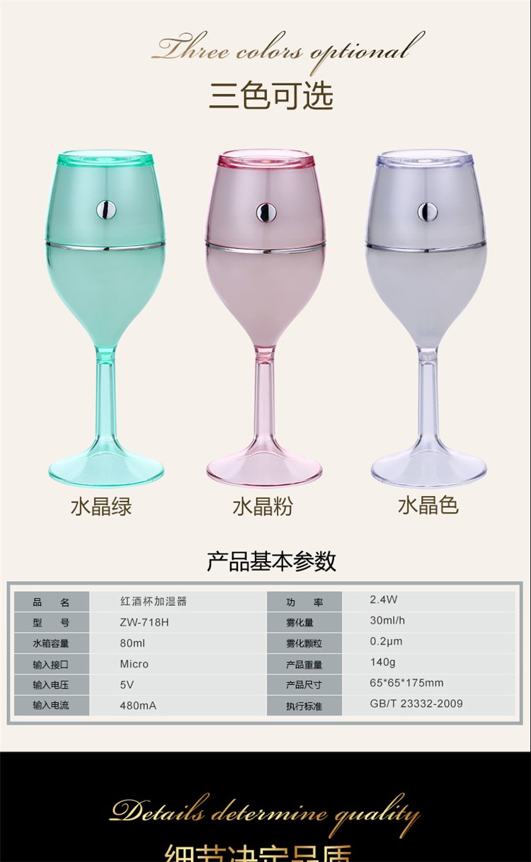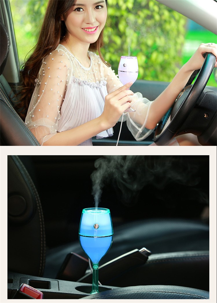 USB迷你红酒杯加湿器创意七彩夜灯加湿香薰器温馨空气净化器