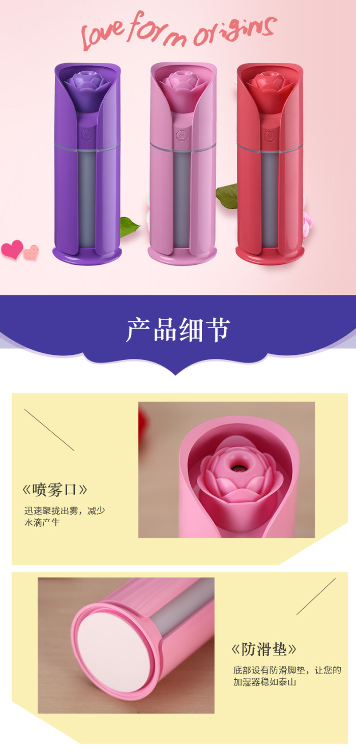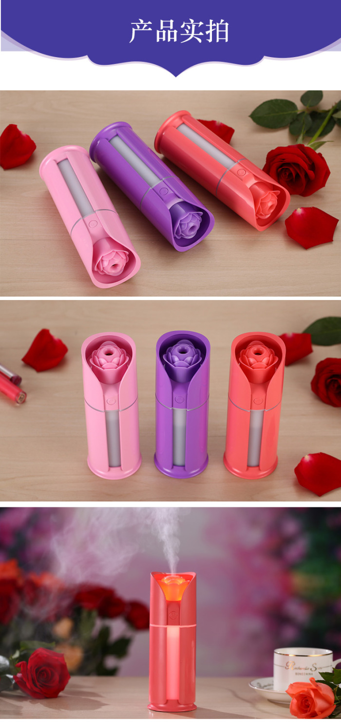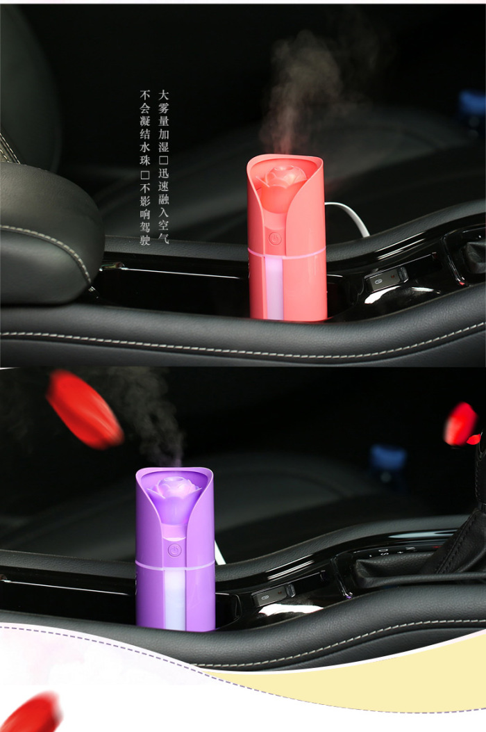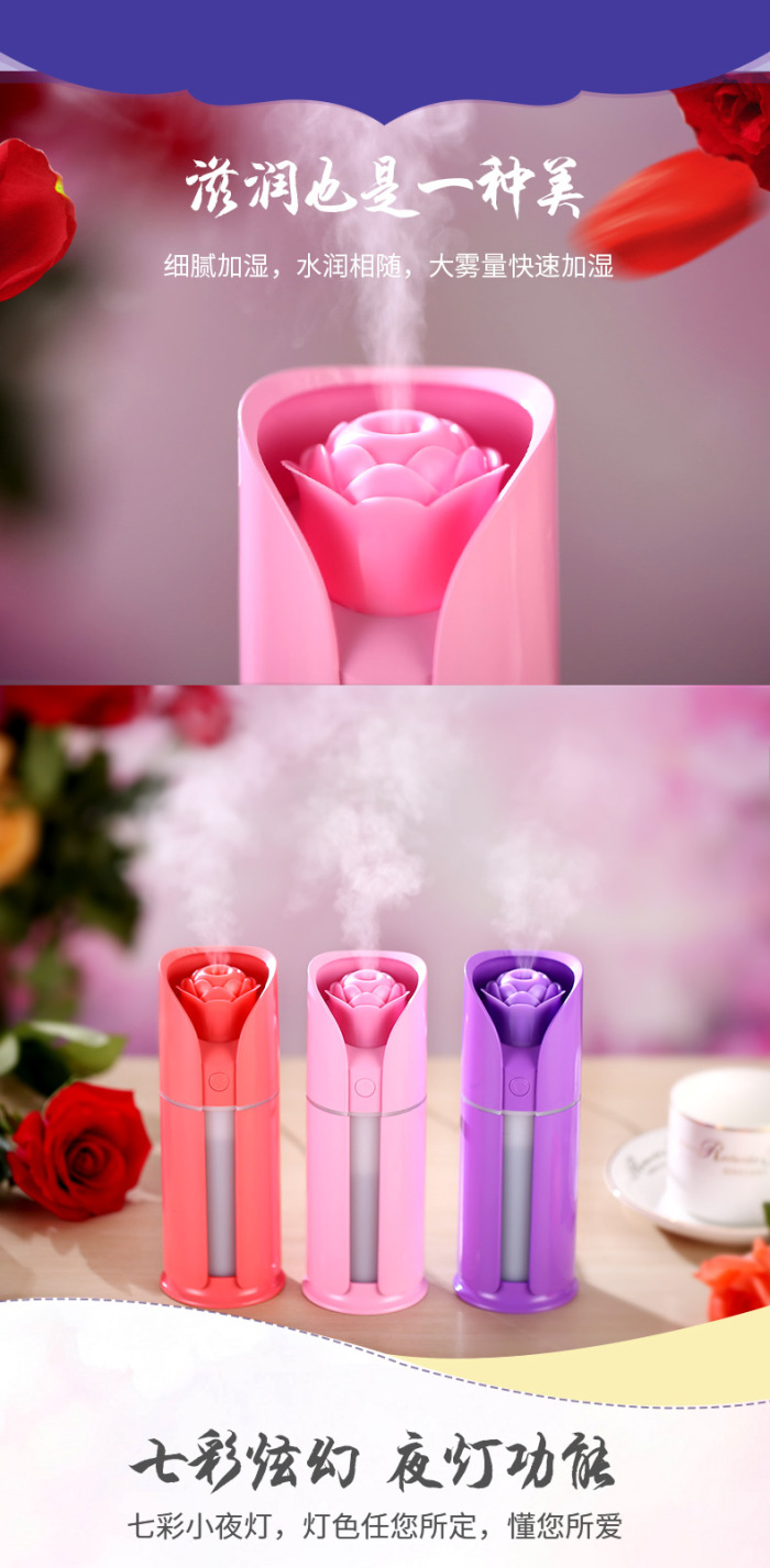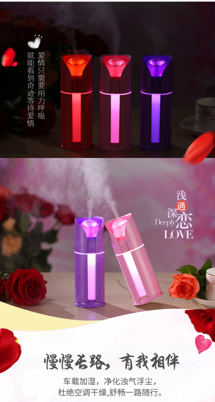 玫瑰之恋usb加湿器卧室静音迷你空气办公桌车载空调夜灯