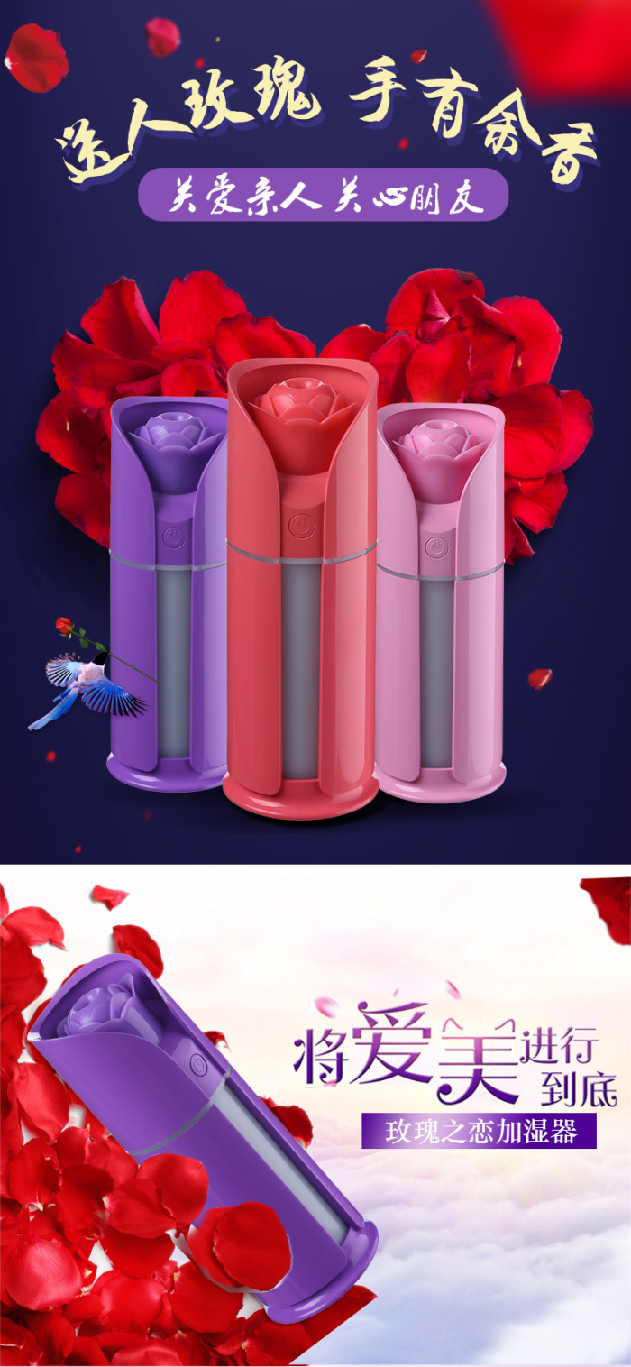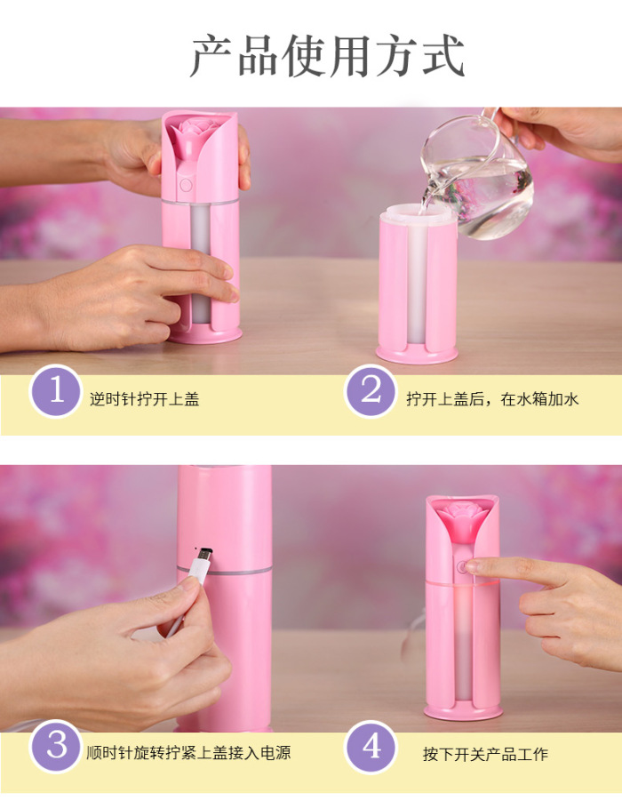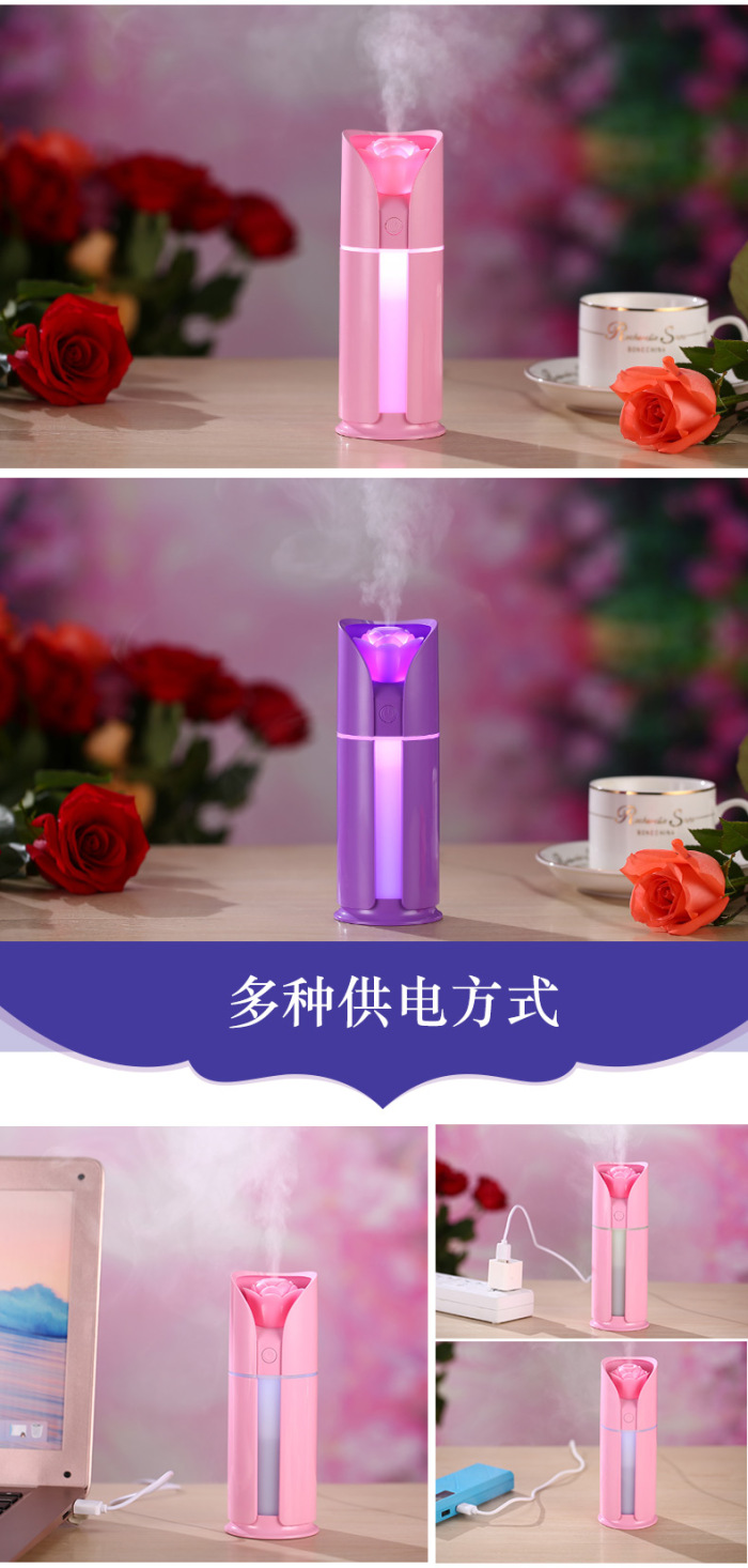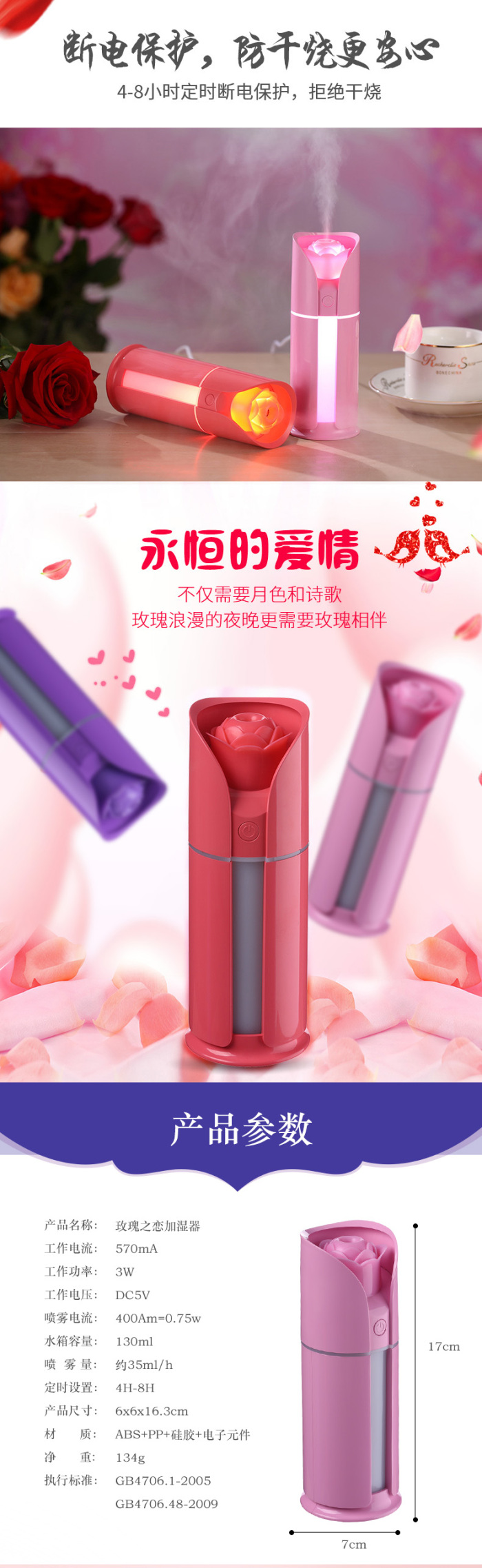 玫瑰之恋usb加湿器卧室静音迷你空气办公桌车载空调夜灯