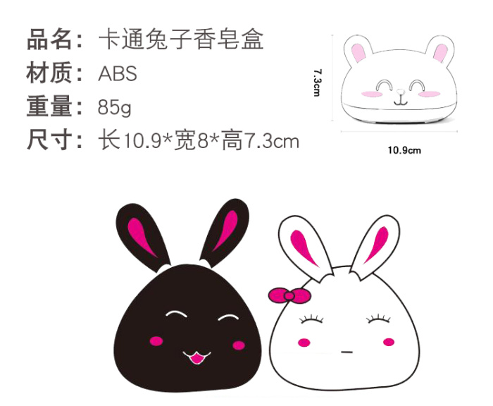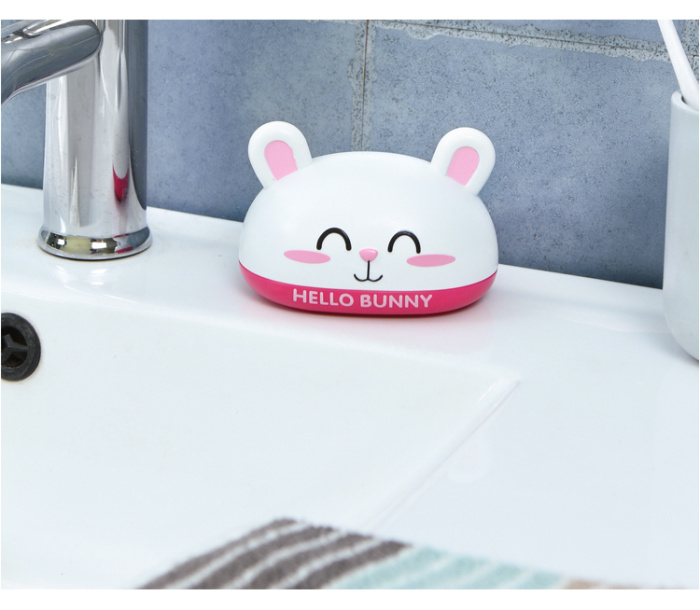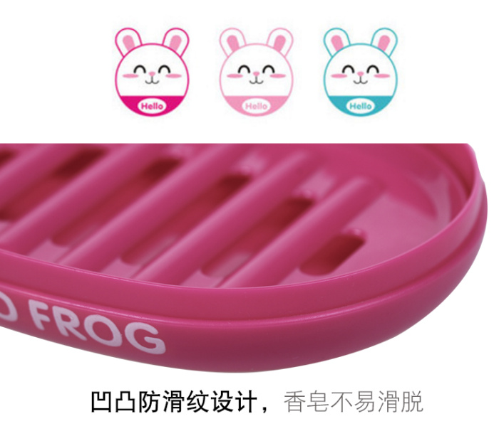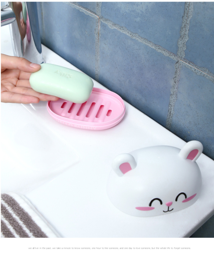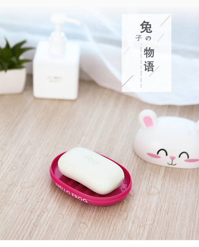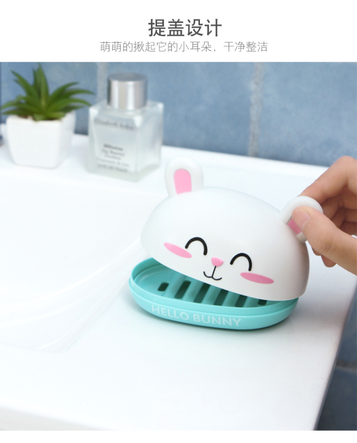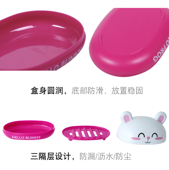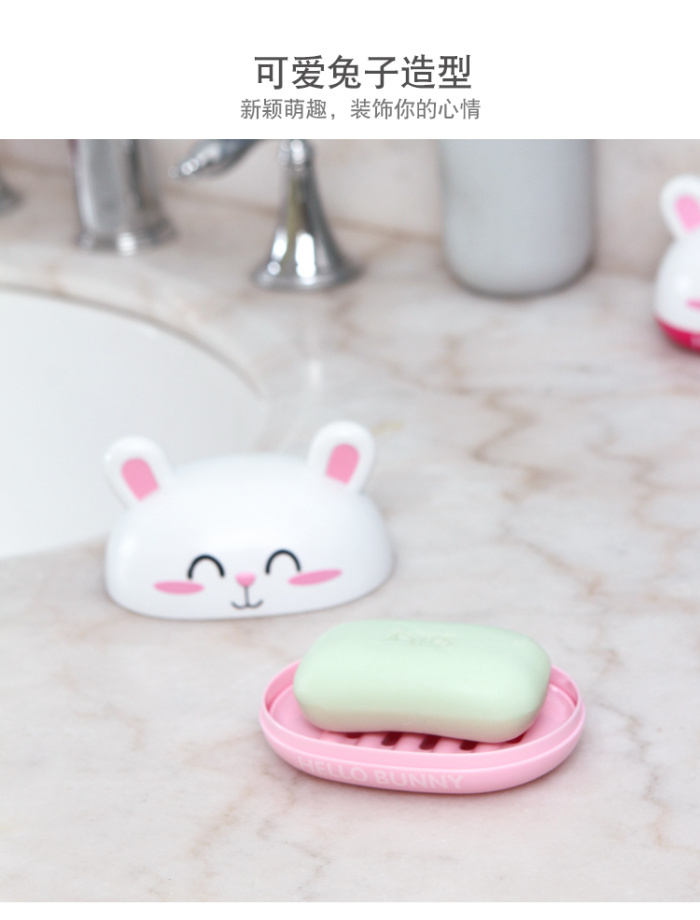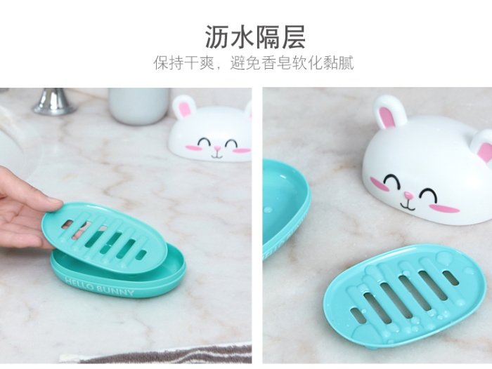 卡通兔子糖果色双层沥水香皂盒 创意浴室卫生间塑料带盖肥皂托