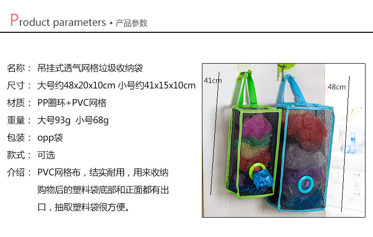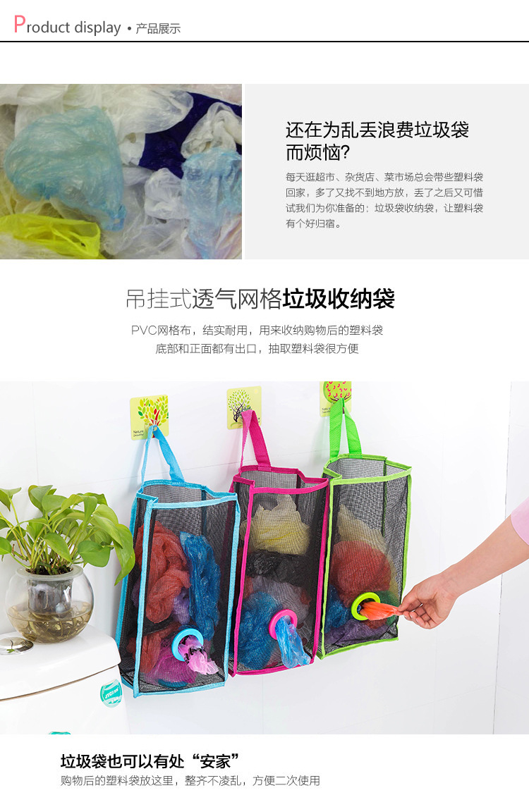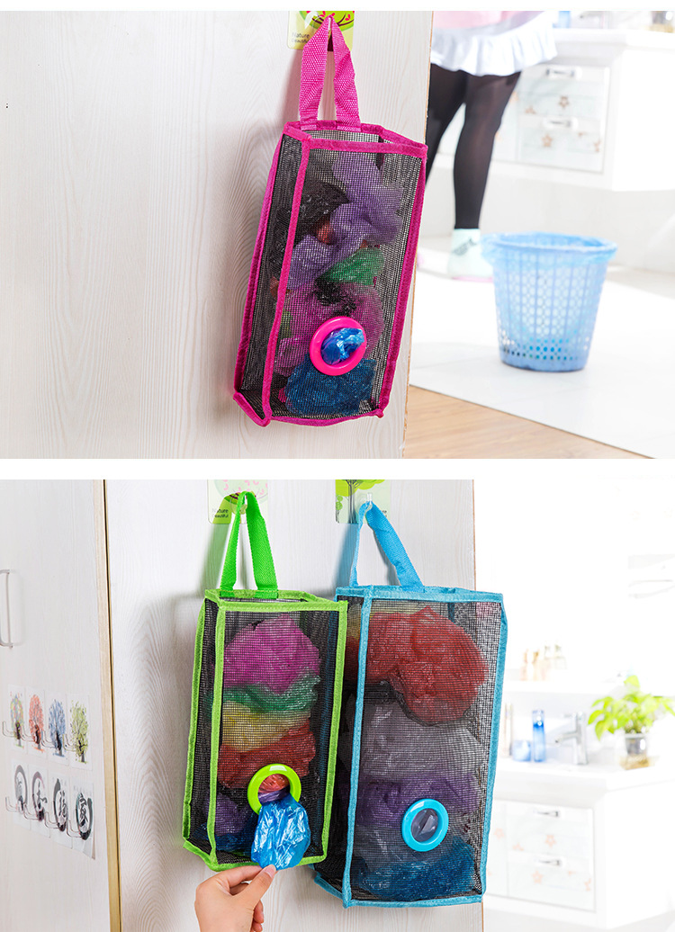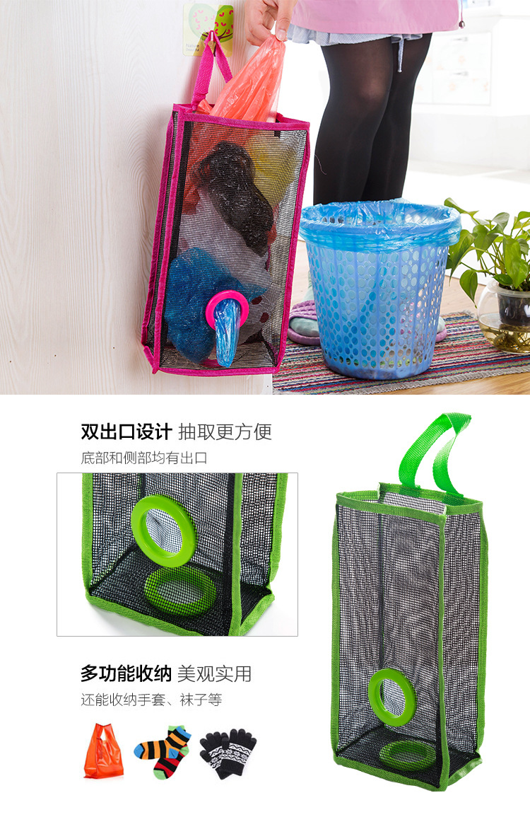 厨房吊挂式透气网格垃圾袋收纳袋环保塑料袋便捷抽取储物袋
