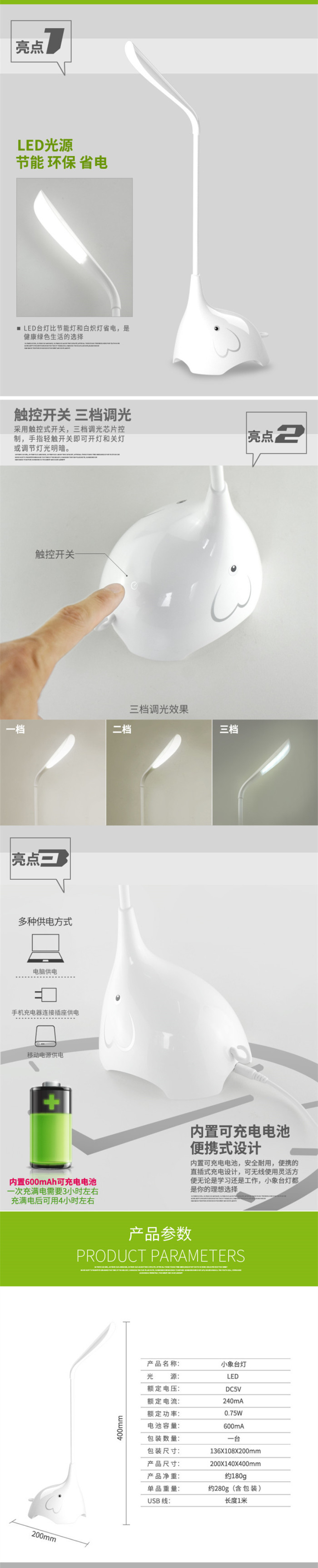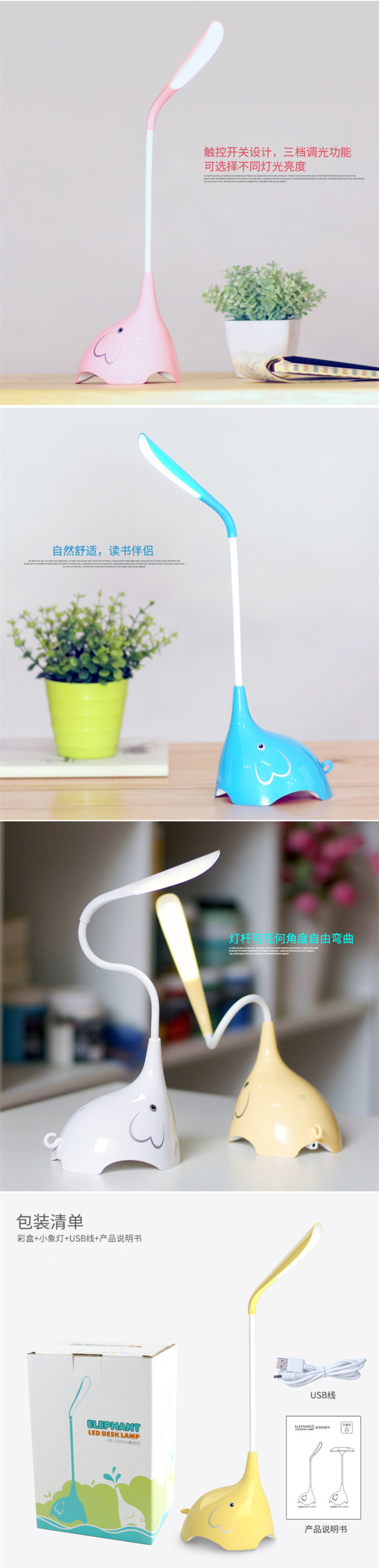 USB充电台灯大象小象创意LED灯儿童床头灯 护眼调光小夜灯