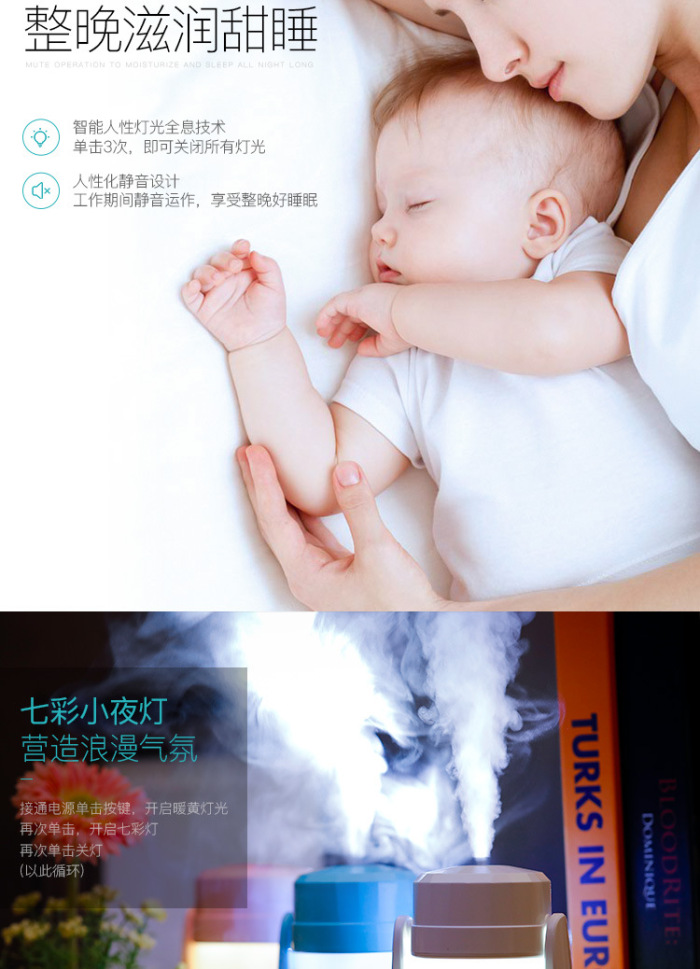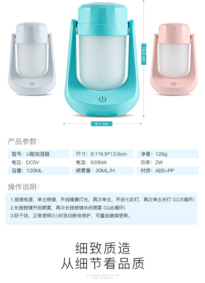 U酷加湿器美容补水香薰机USB七彩小夜灯冬季补水去干燥加湿器