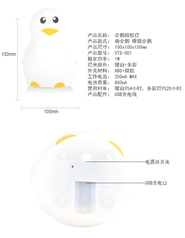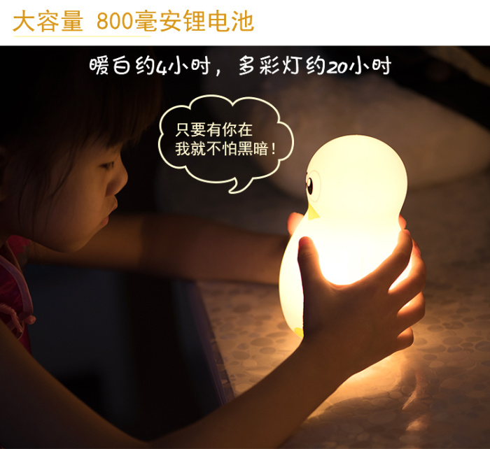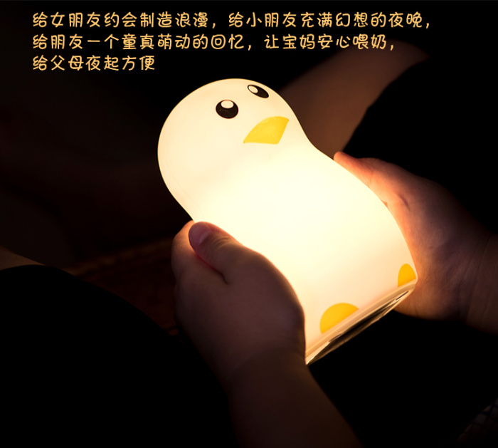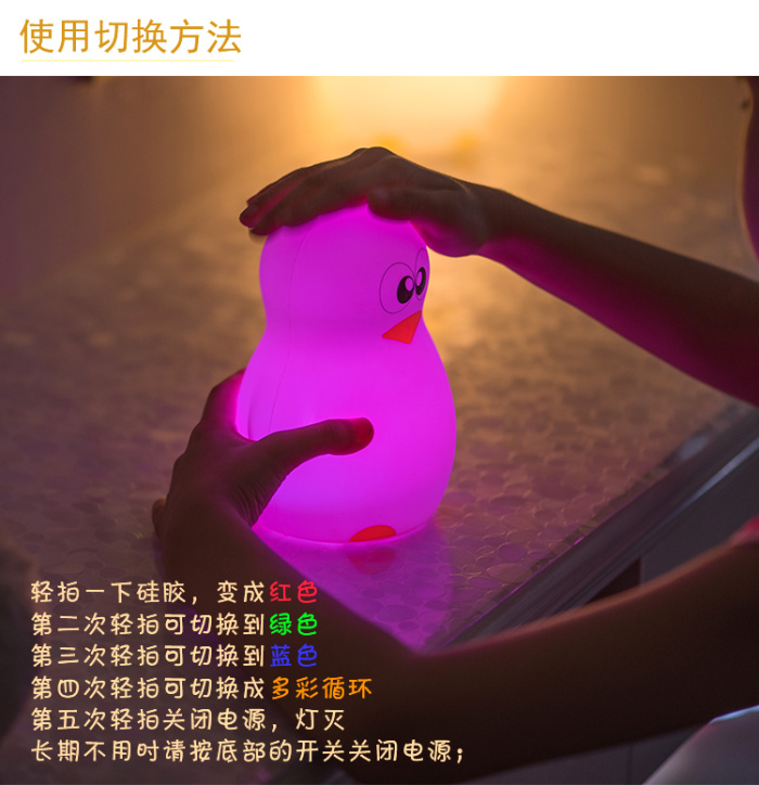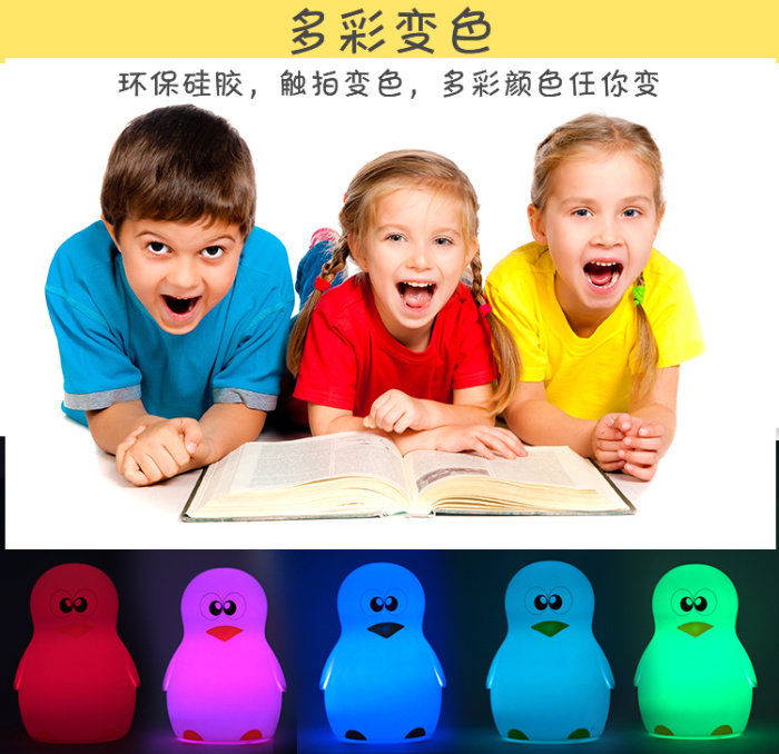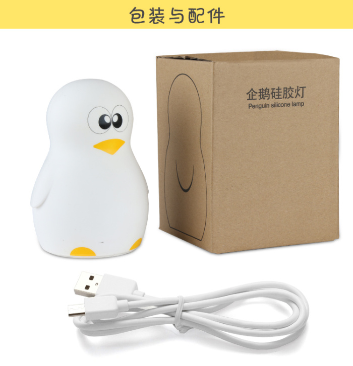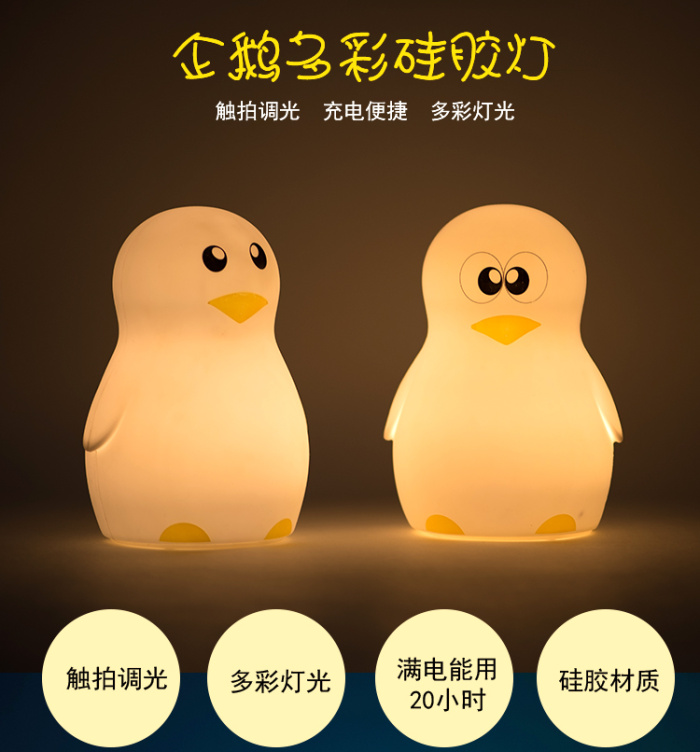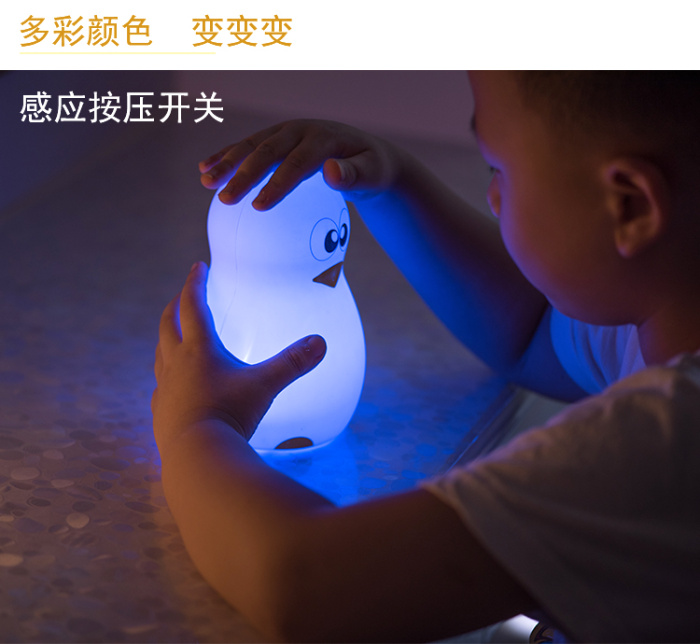 萌企鹅硅胶灯情感萌宠七彩可爱企鹅小夜灯 USB萌宠拍拍硅胶灯