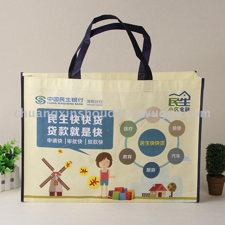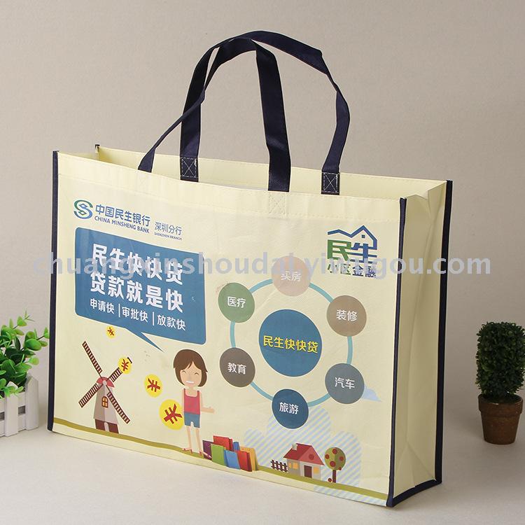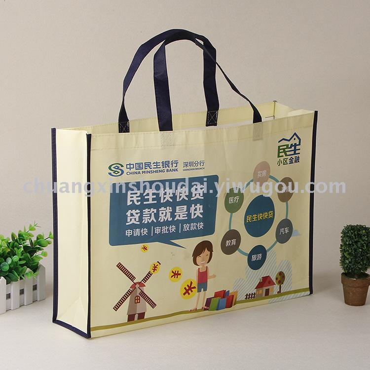民生银行覆膜无纺布手提袋定做 手提打叉环保礼品包装袋