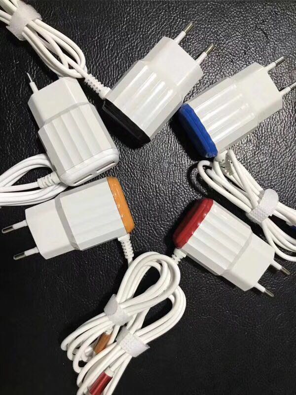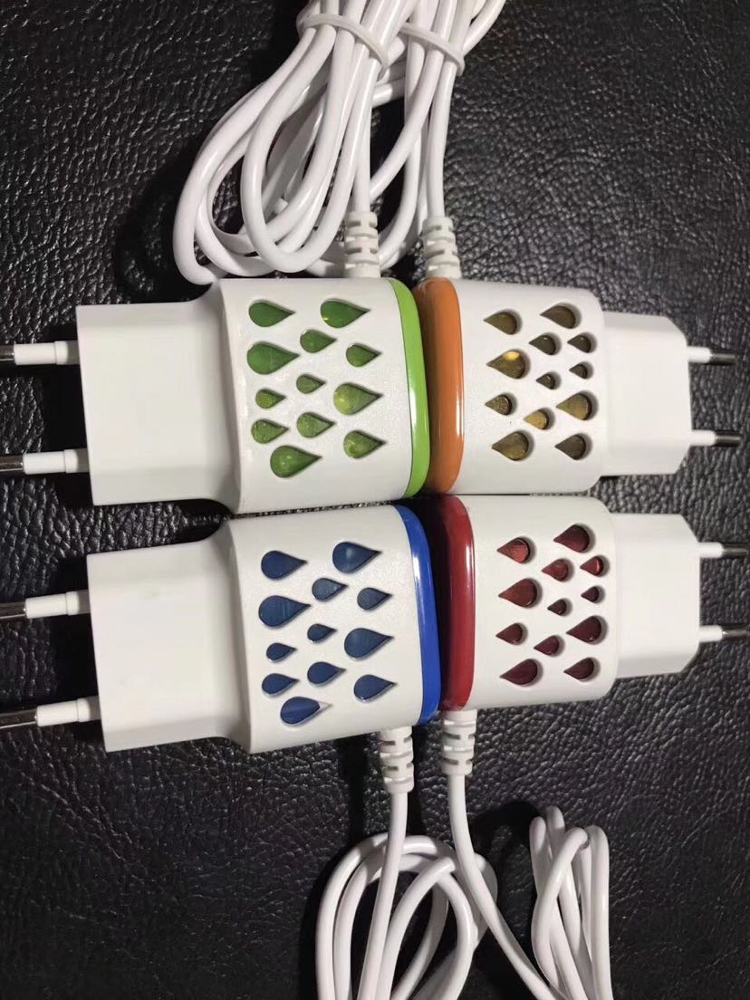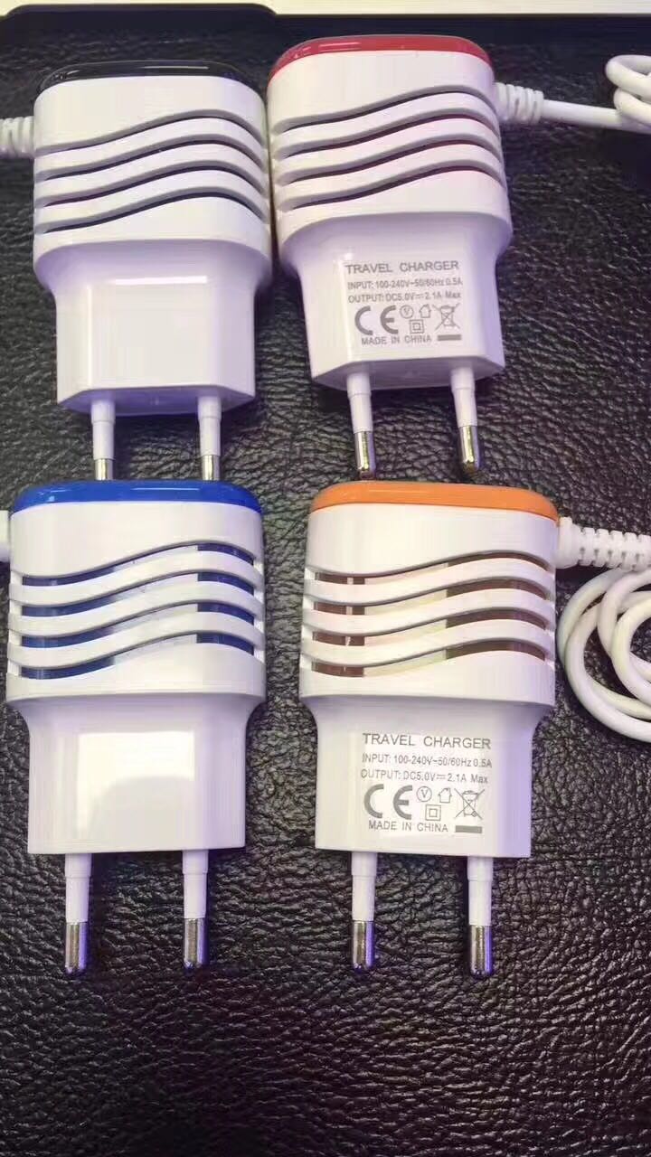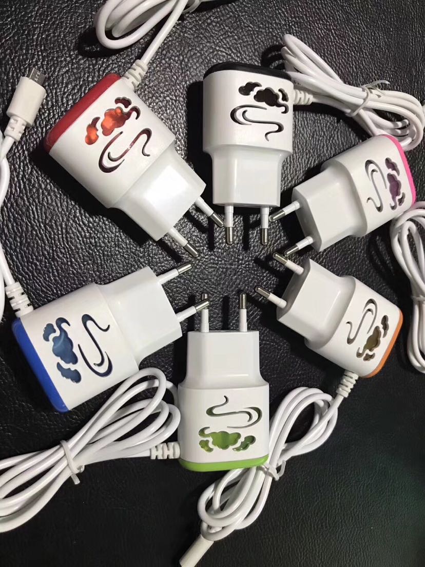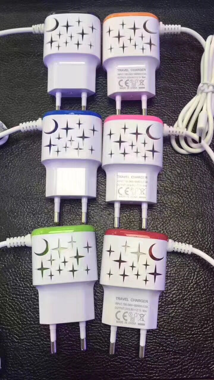 1.2A双usb带线手机充电器5v充电器欧规带灯满天星