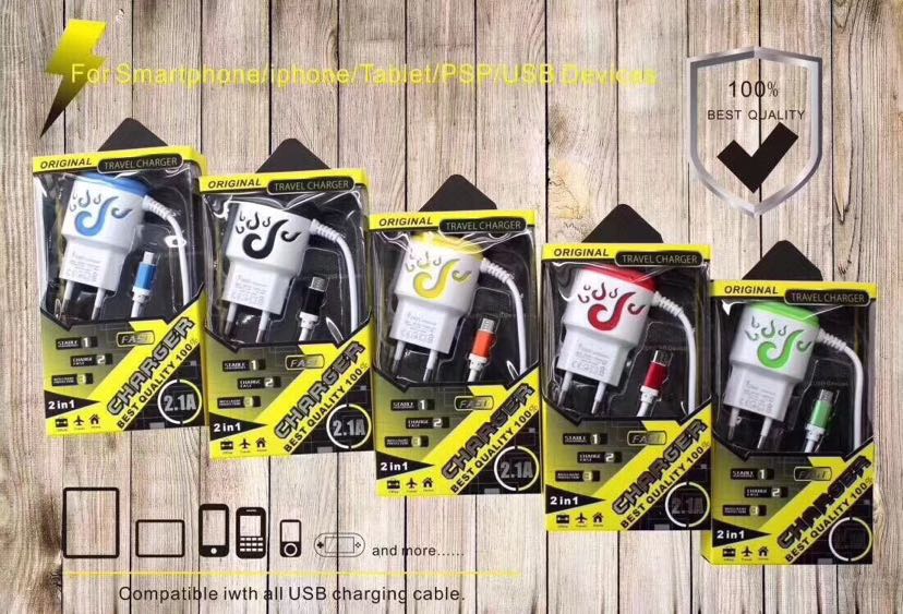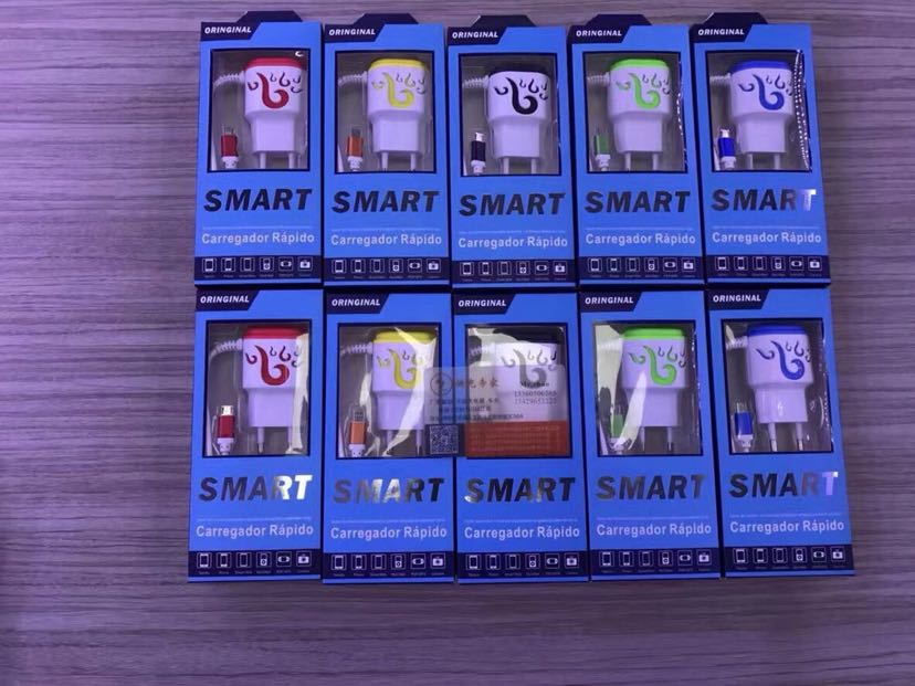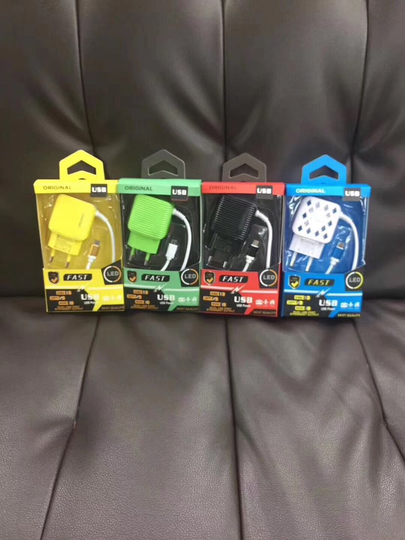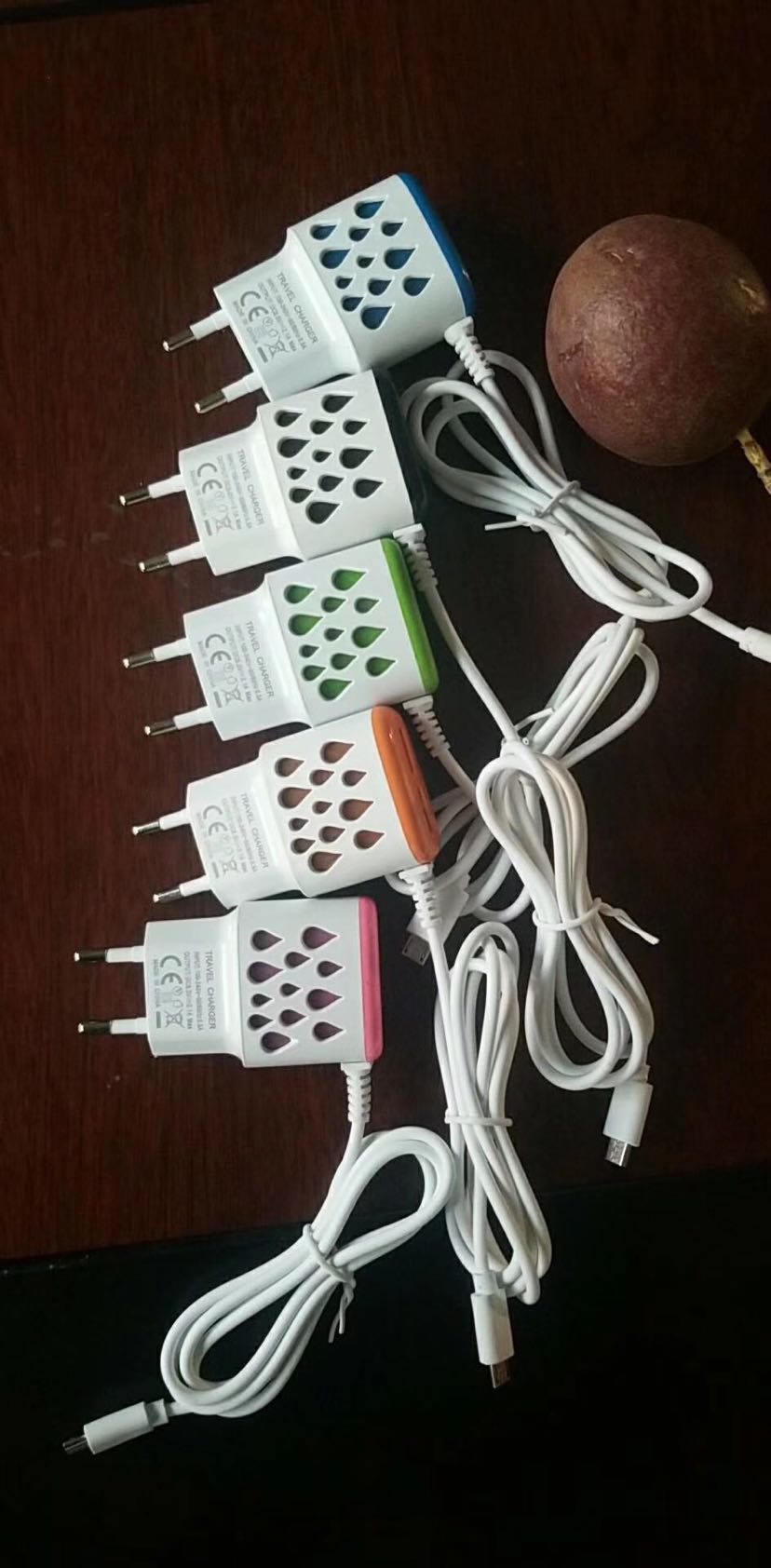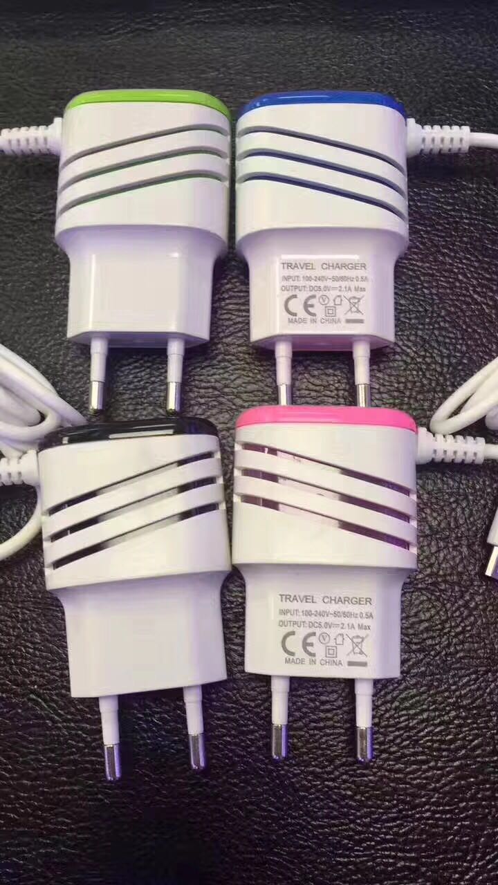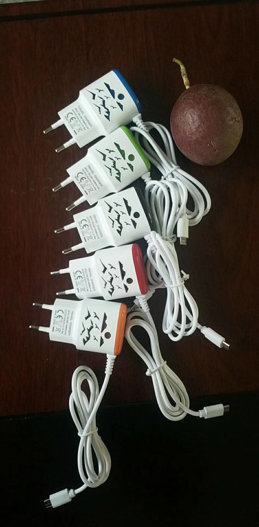 1.2A双usb带线手机充电器5v充电器欧规带灯满天星