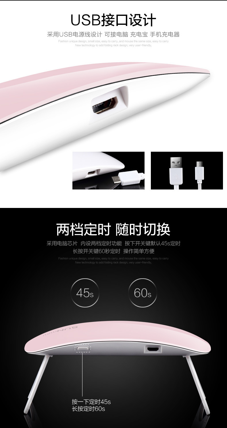 阳光SUN迷你便携美甲灯指甲油胶鼠标灯烘干机USB接口光疗灯