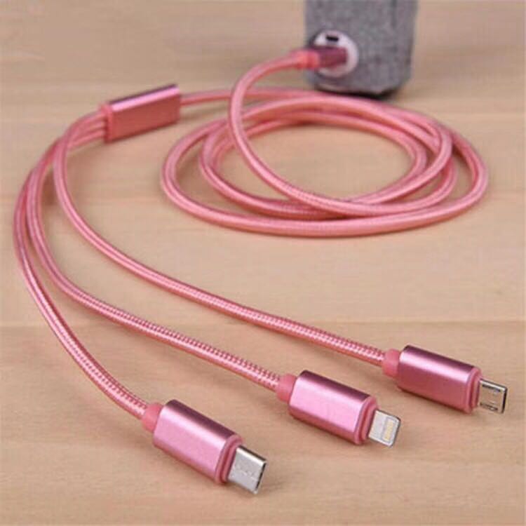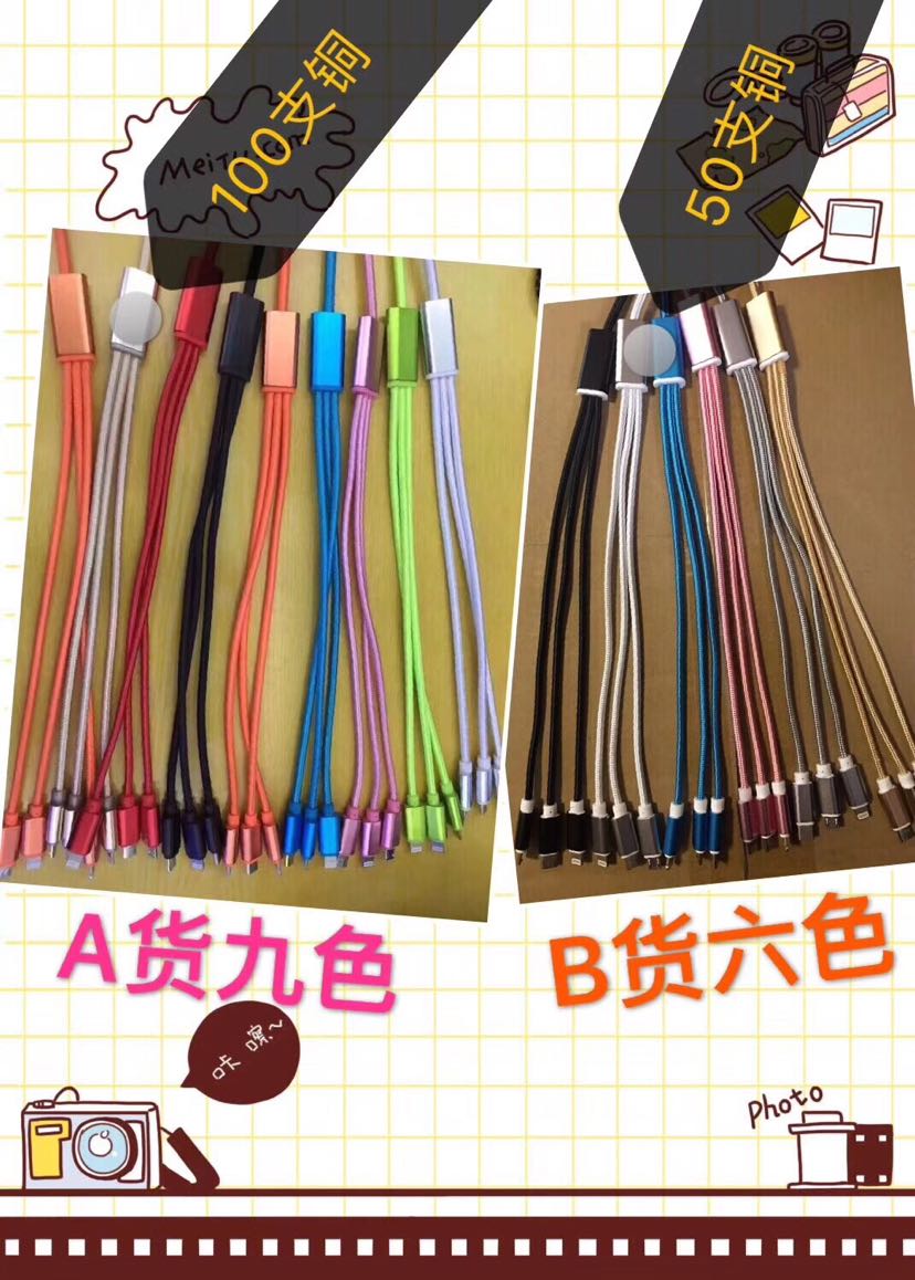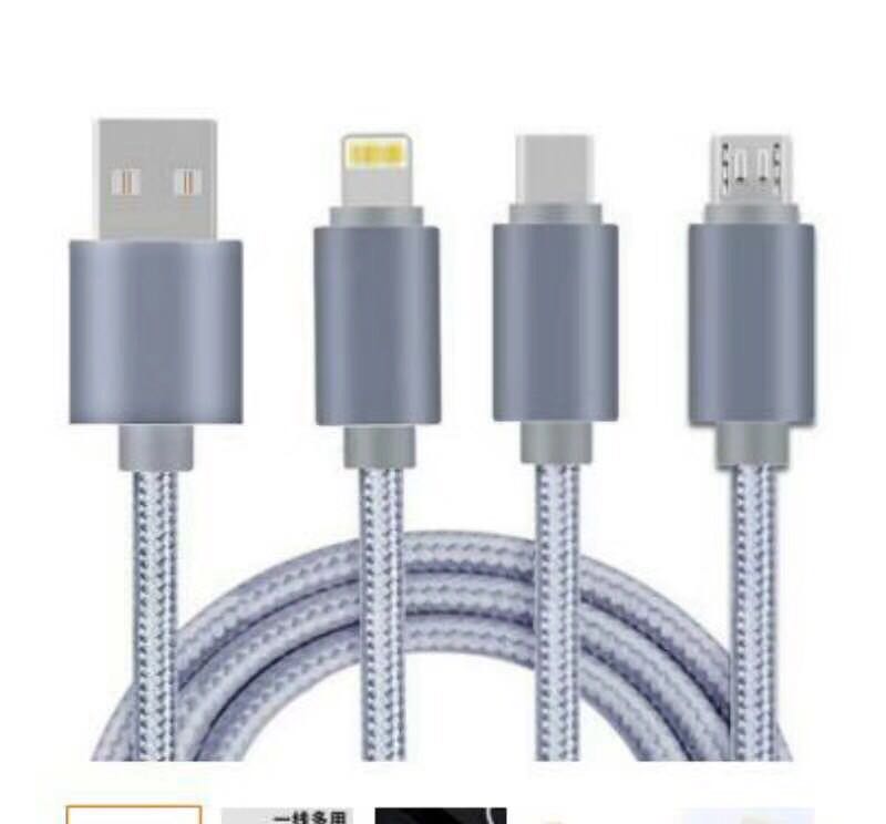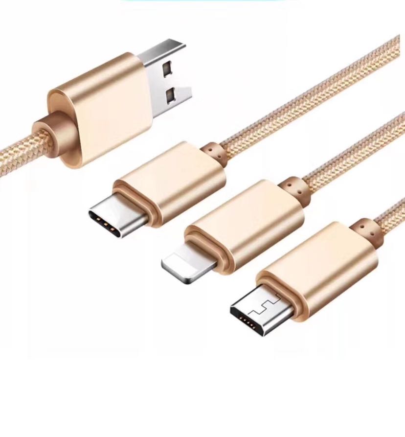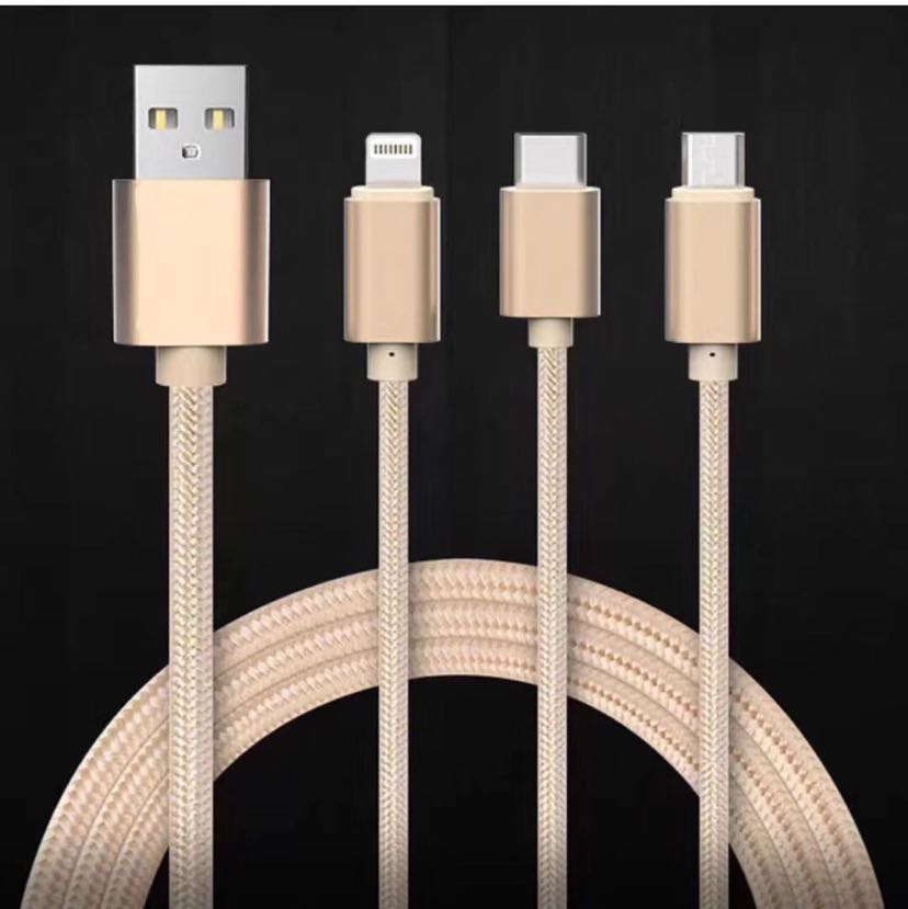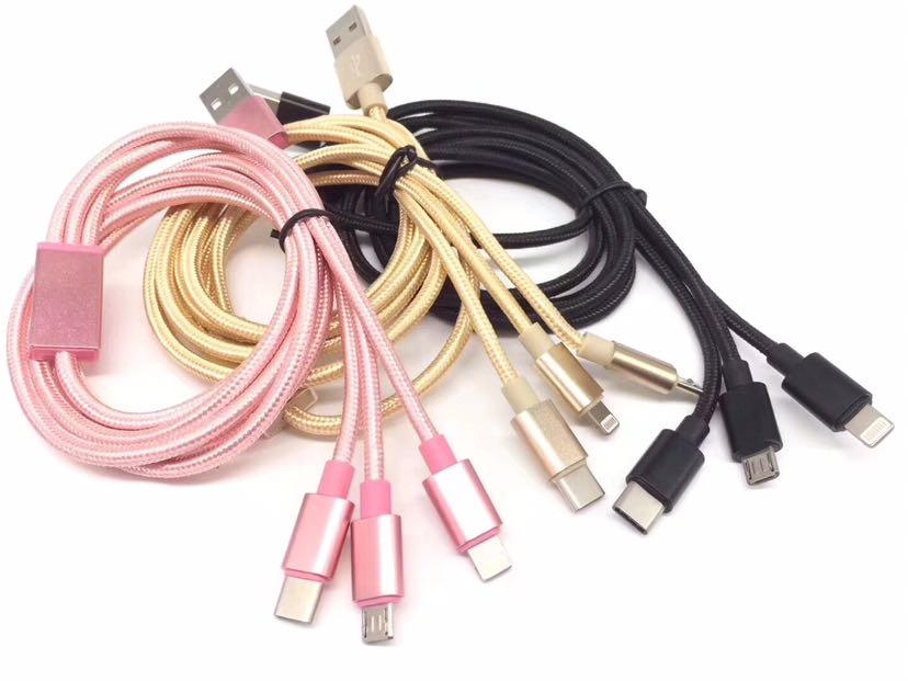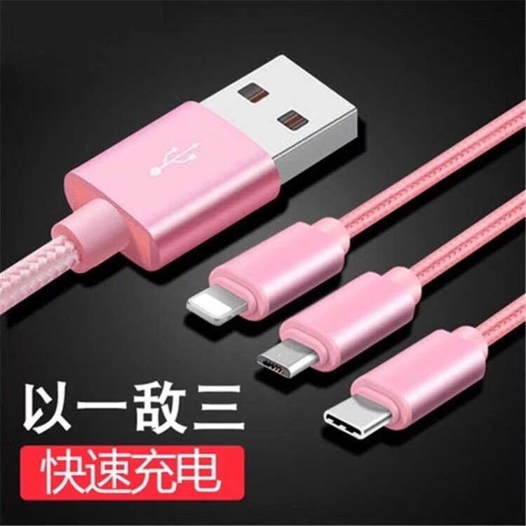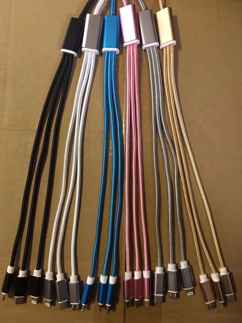 一拖三数据线 Type-C 三合一铝合金尼龙快充数据线