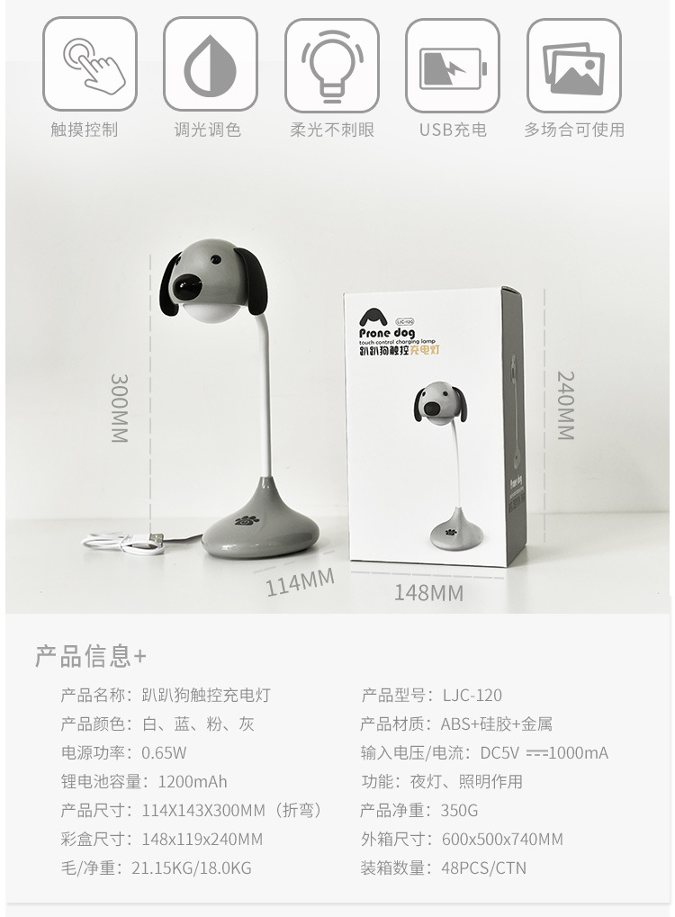 趴趴狗触控台灯 USB充电LED柔光灯 卡通狗床头夜灯