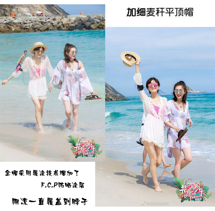 花儿与少年第三季娜扎同款草帽平顶麦杆遮阳帽子女夏天沙滩防晒帽