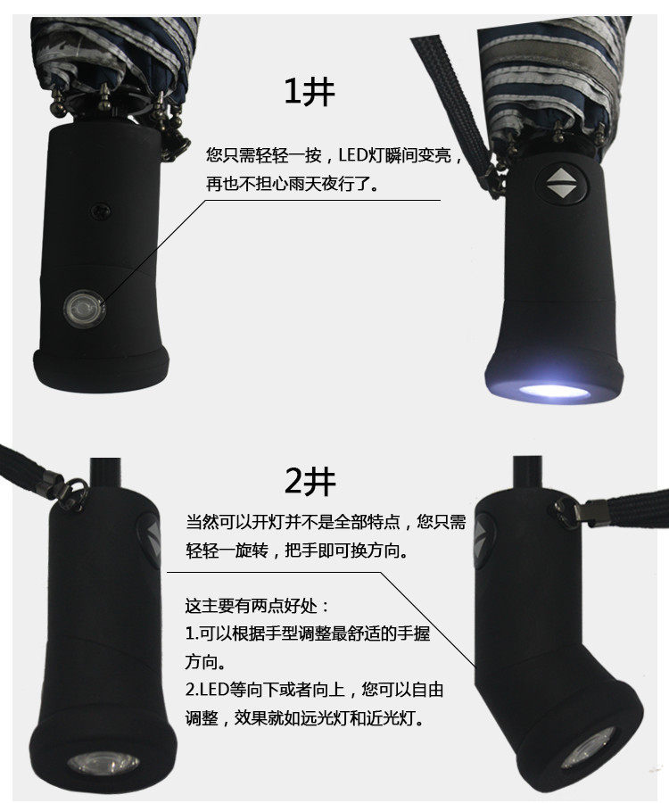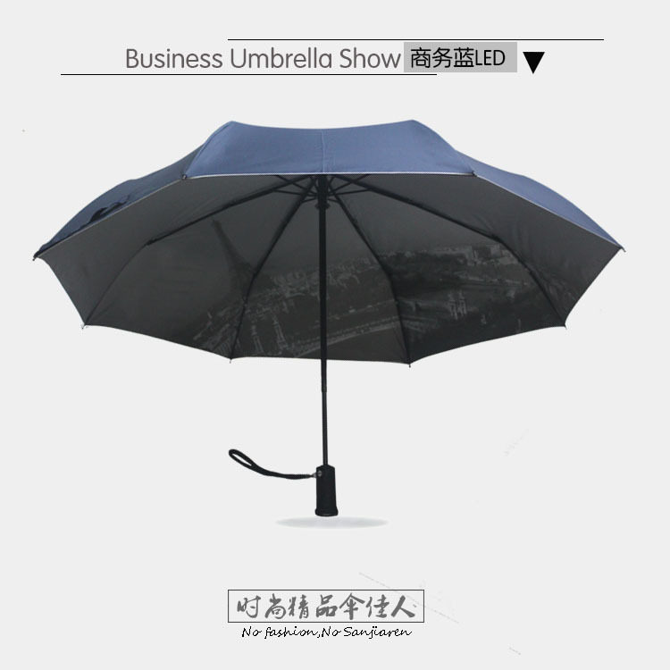 创意发光Led灯伞折叠伞男士女士商务安全夜行自动伞防风雨伞