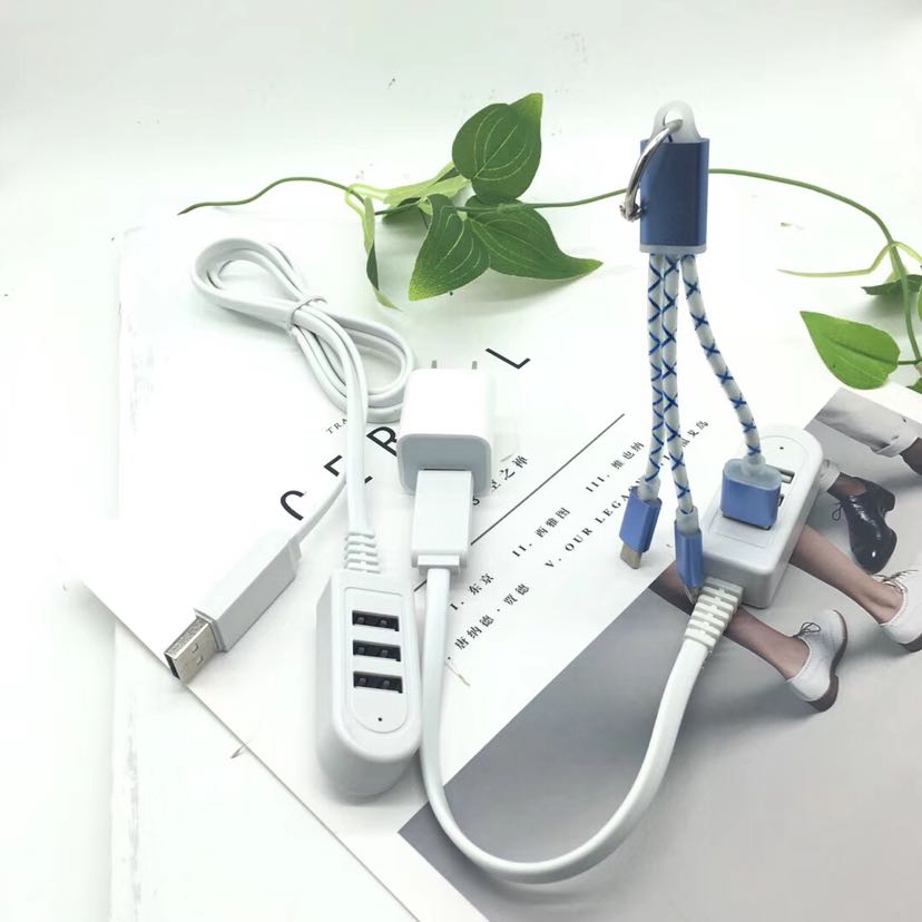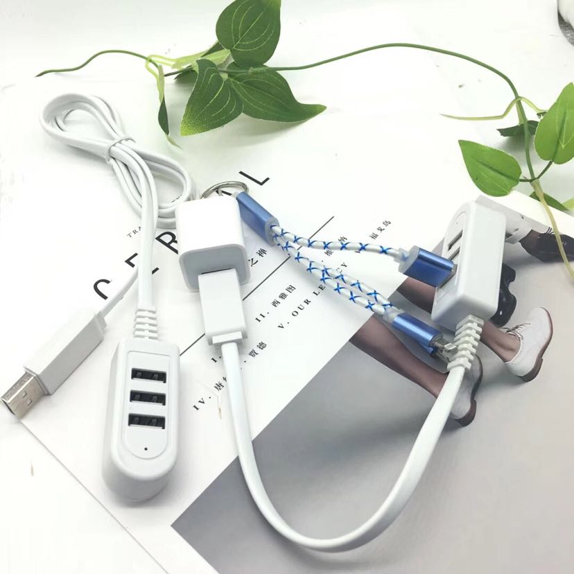 新款 USB转换器充电数据线 3USB接口 一出三带线排插