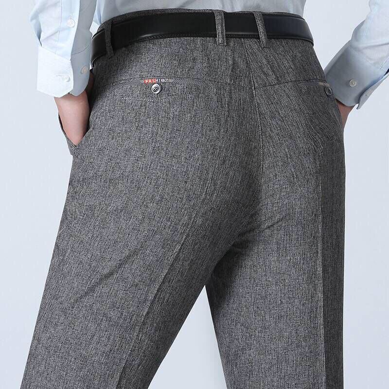 夏季薄款爸爸裤子西裤男宽松中年男士休闲裤中老年人男裤高腰长裤