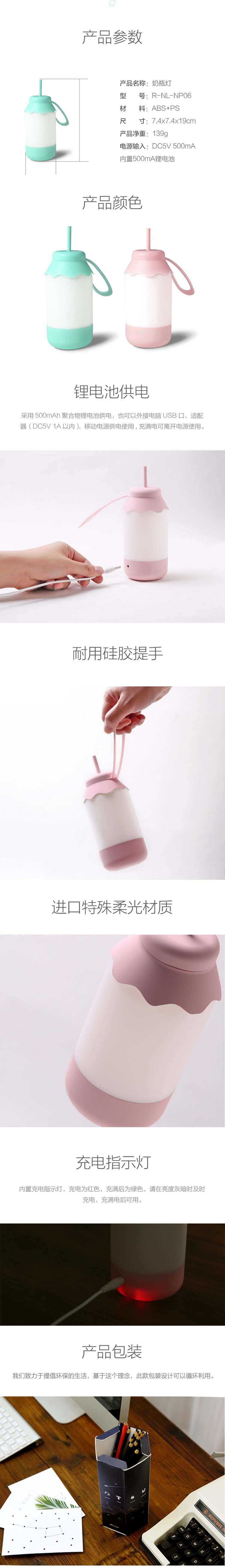 外贸专供奶瓶灯 创意卧室婴儿喂奶夜灯 USB充电儿童床头LED小夜灯