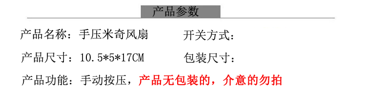 夏季可爱米奇儿童手压小风扇学生迷你随身风扇创意手持手动降温扇