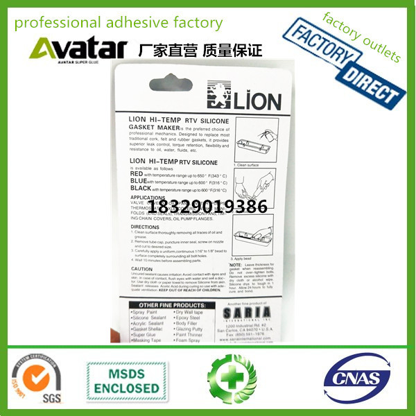 Lion 免垫片红胶 耐高温密封胶 硅酮胶 85g/支 RTV Silicone