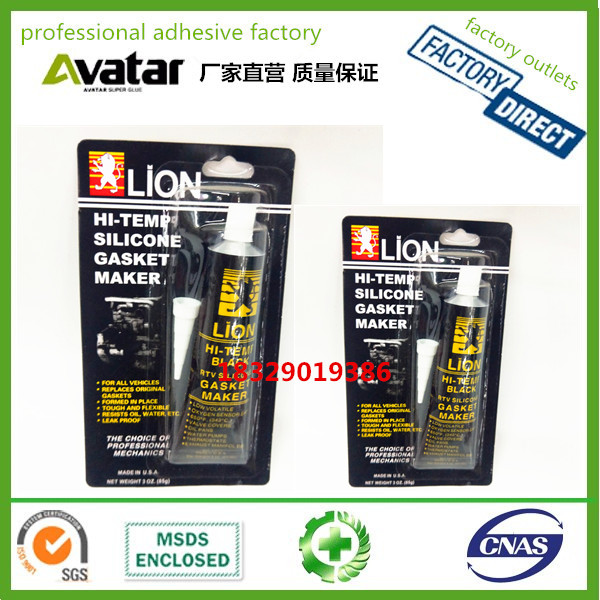 Lion黑色密封胶 汽车机械耐油耐水耐高硅胶 气缸胶批发