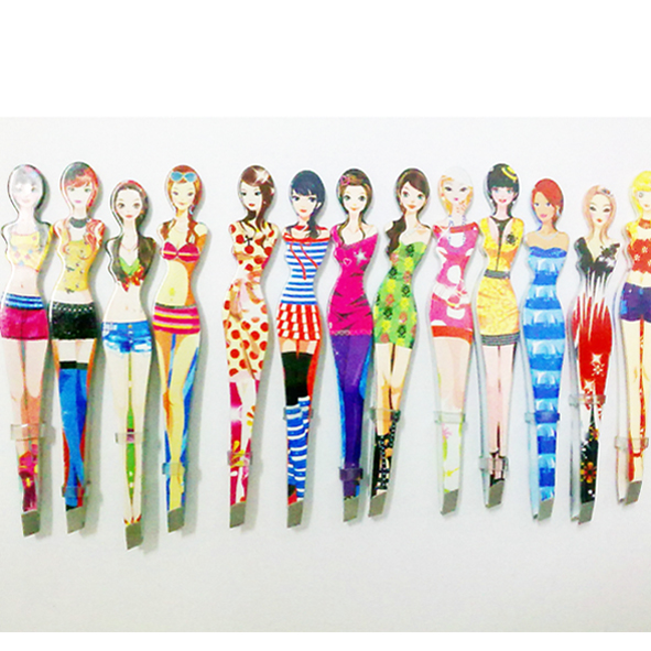 新款大小头美女夹印花眉夹卡通眉夹披覆美女美妆眉钳