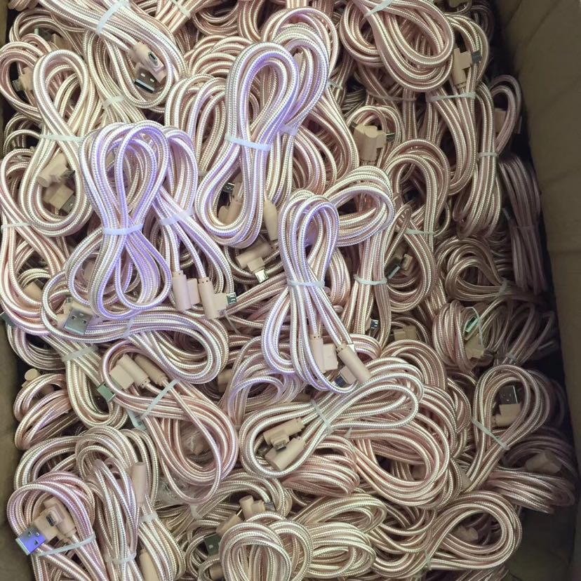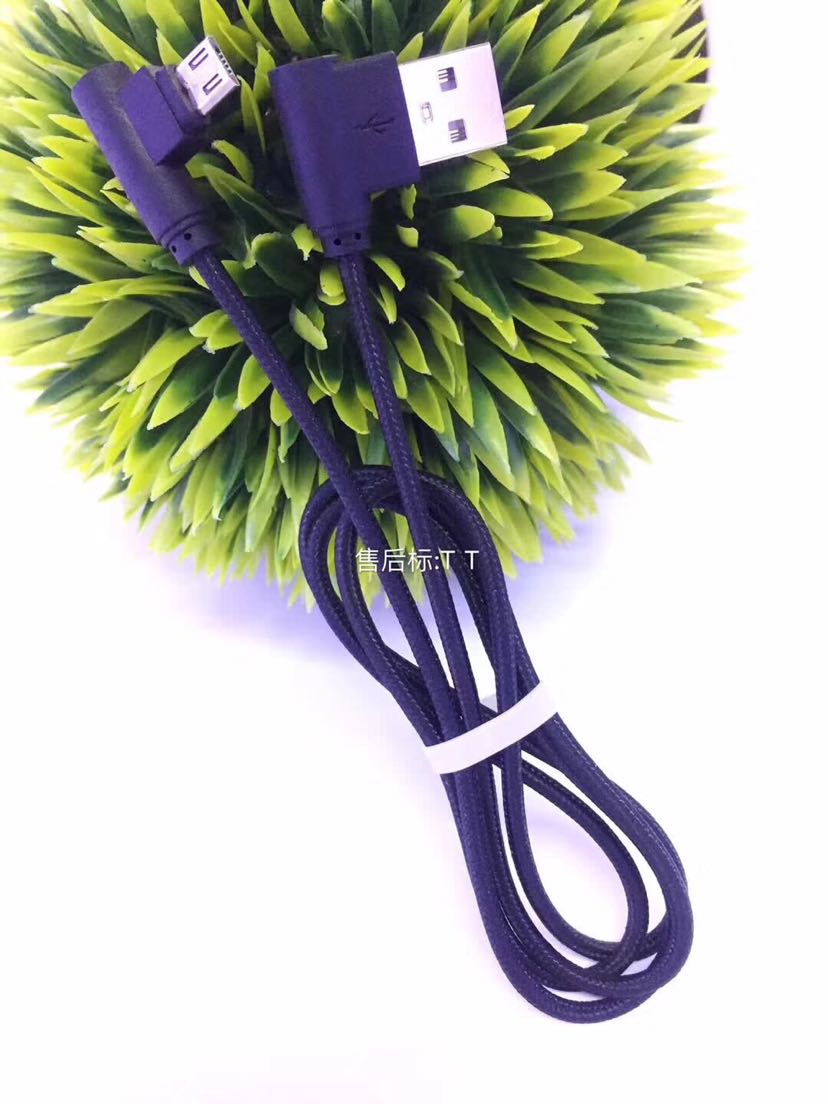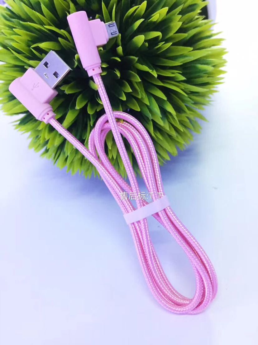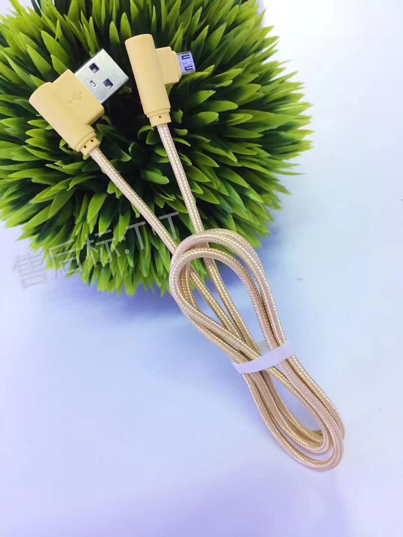 弯头数据线 双侧插亮光线 三星苹果手游编织线