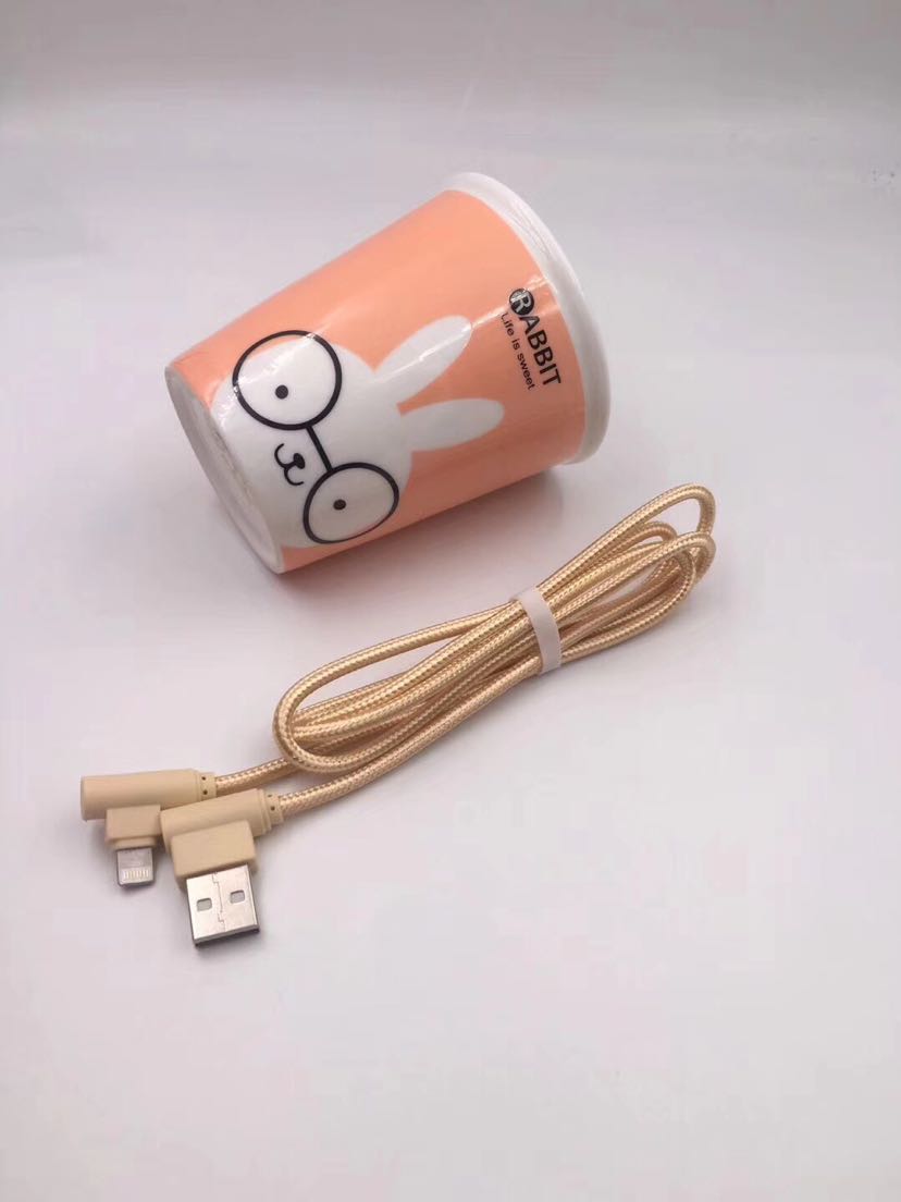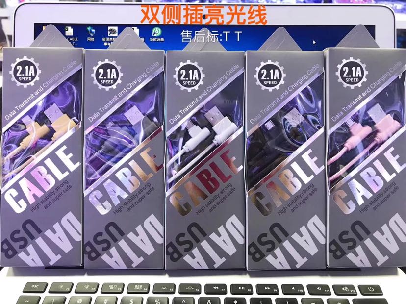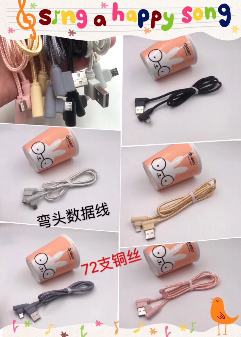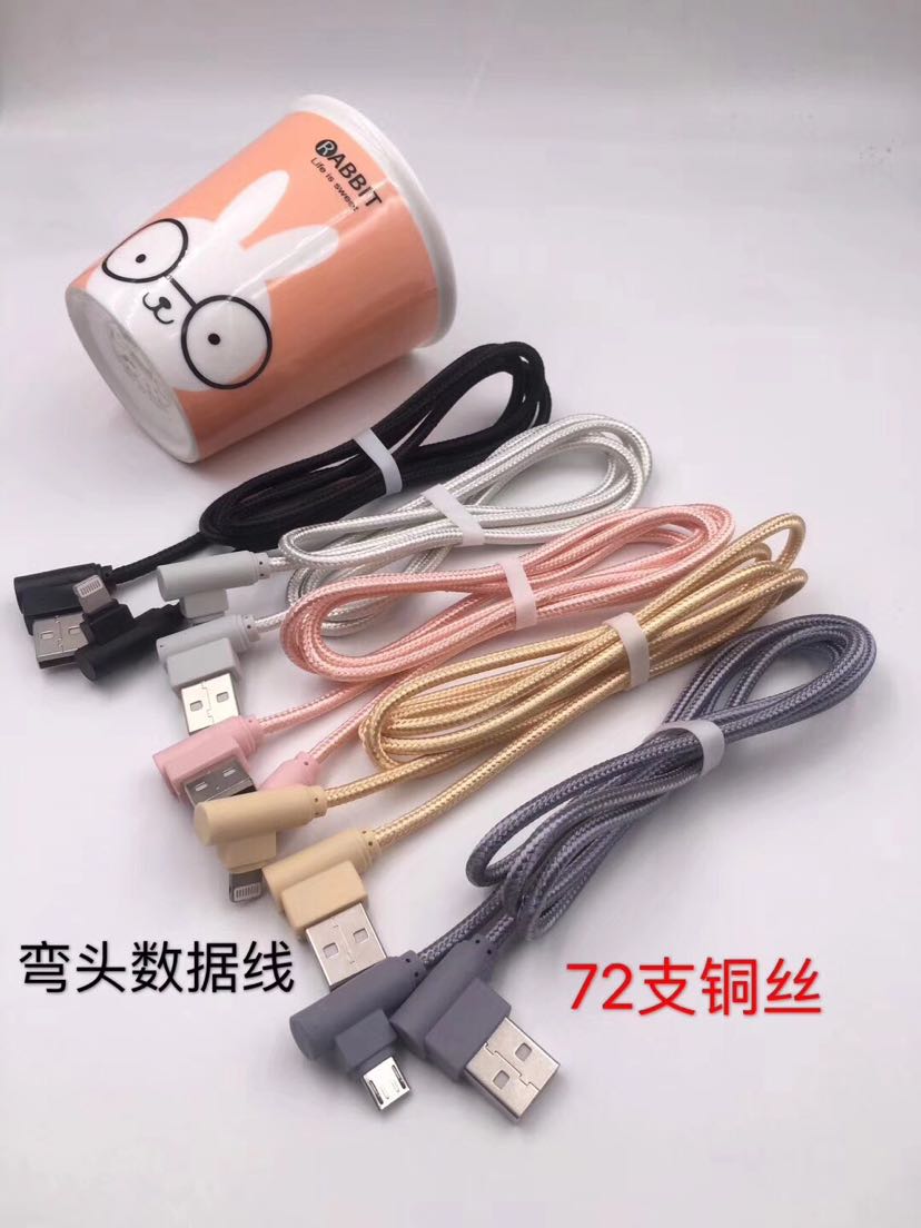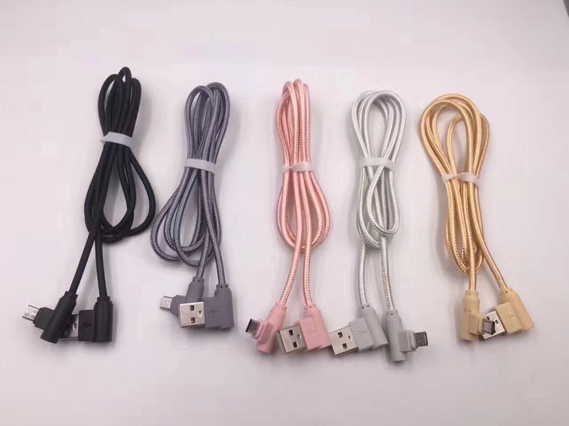 弯头数据线 双侧插亮光线 三星苹果手游编织线