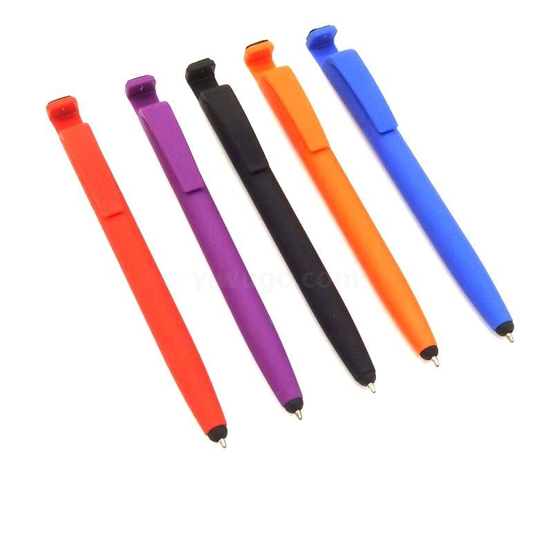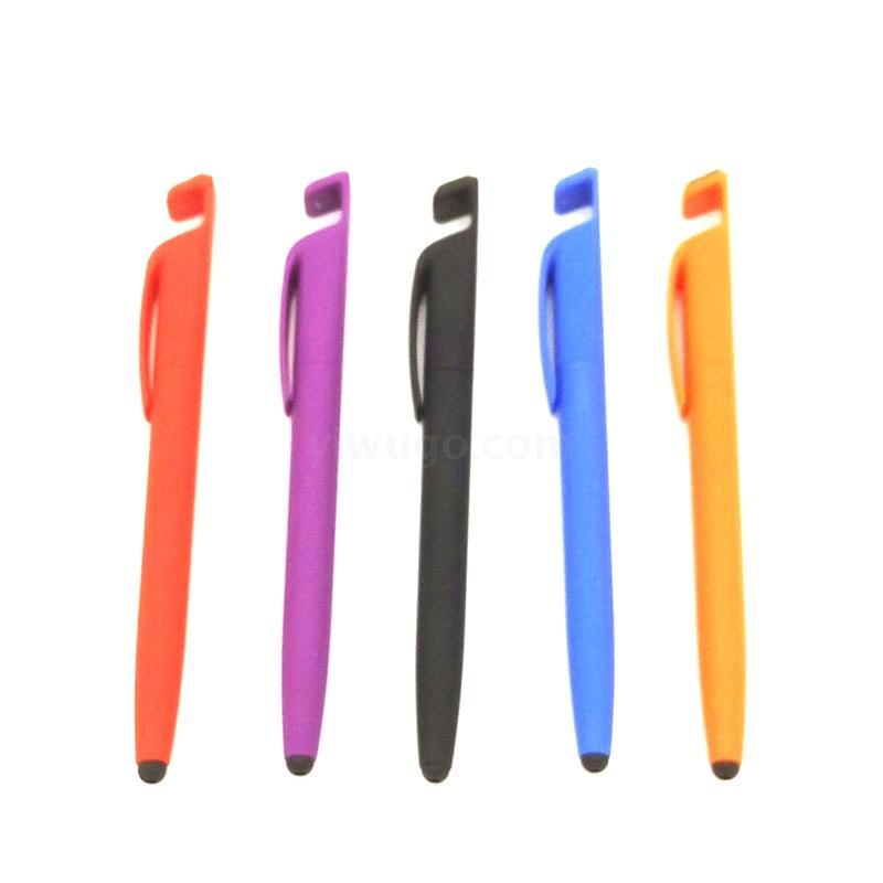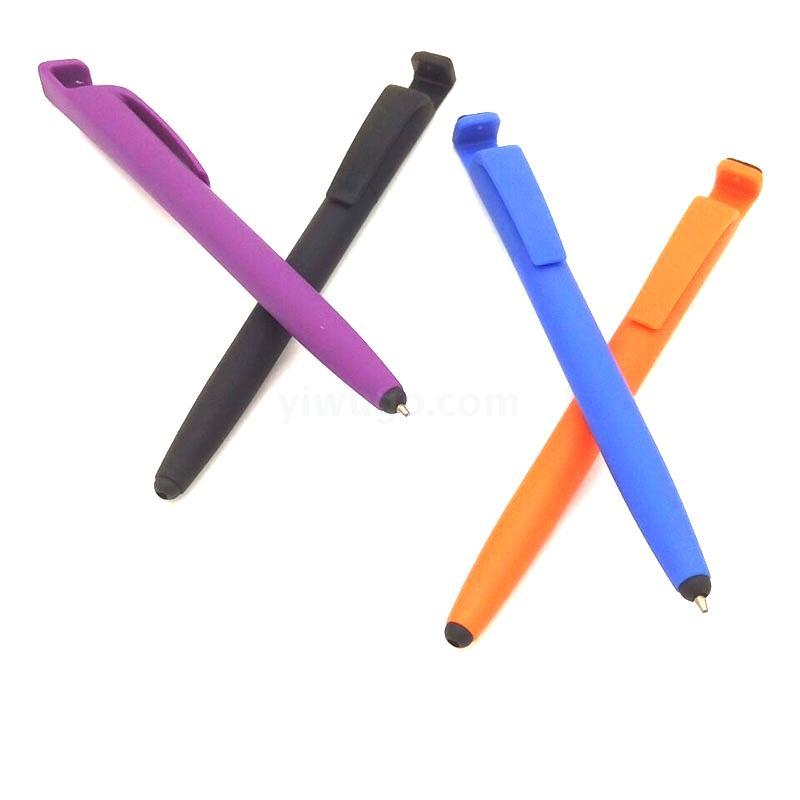 创意款商务办公广告笔支架擦屏触屏圆珠笔定制logo旋动喷胶礼品笔