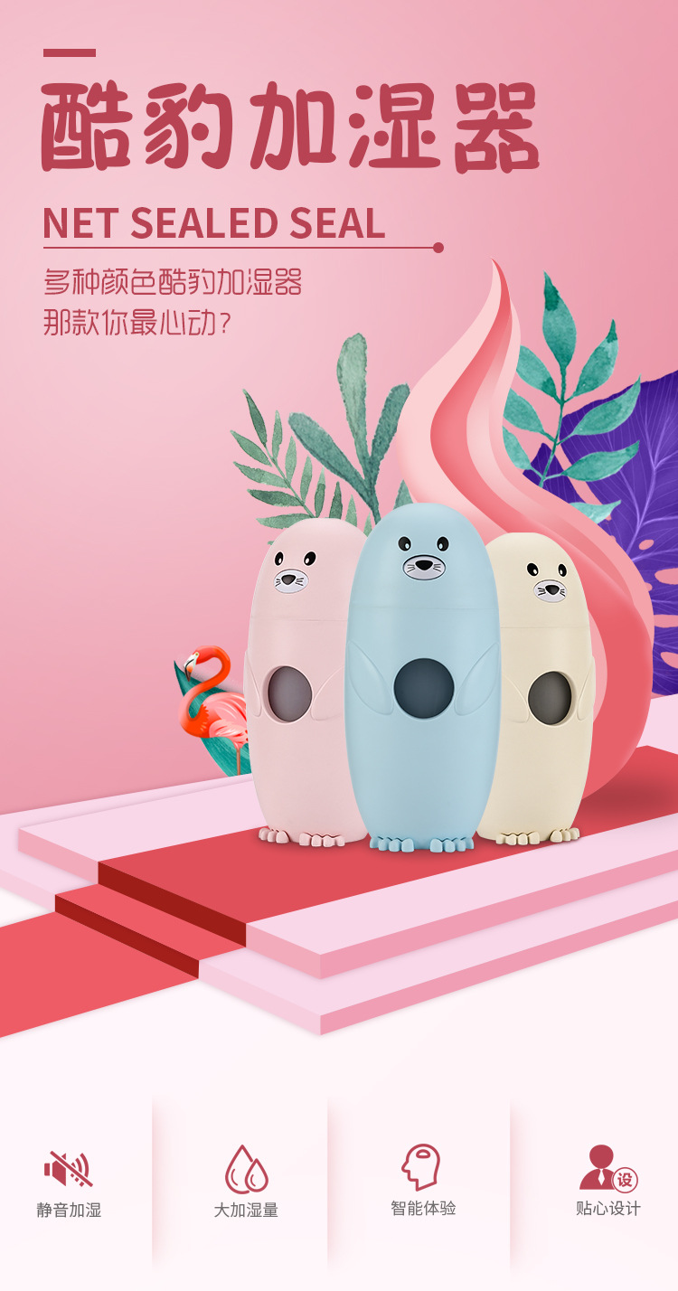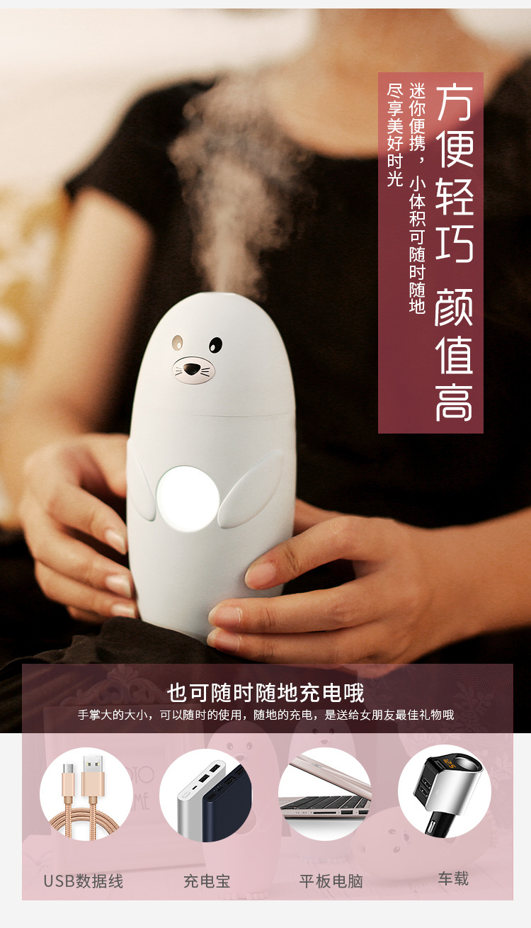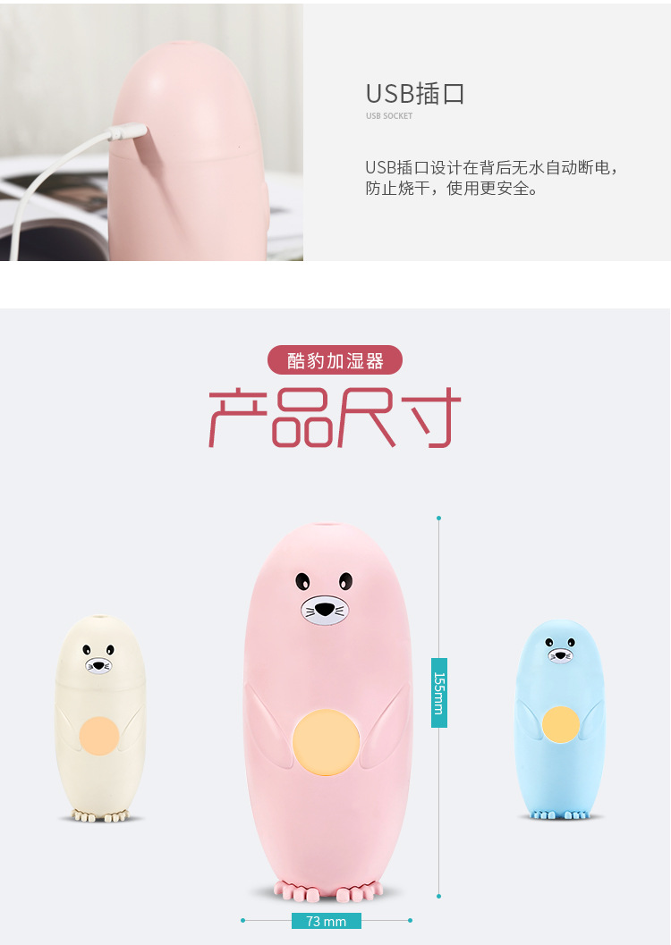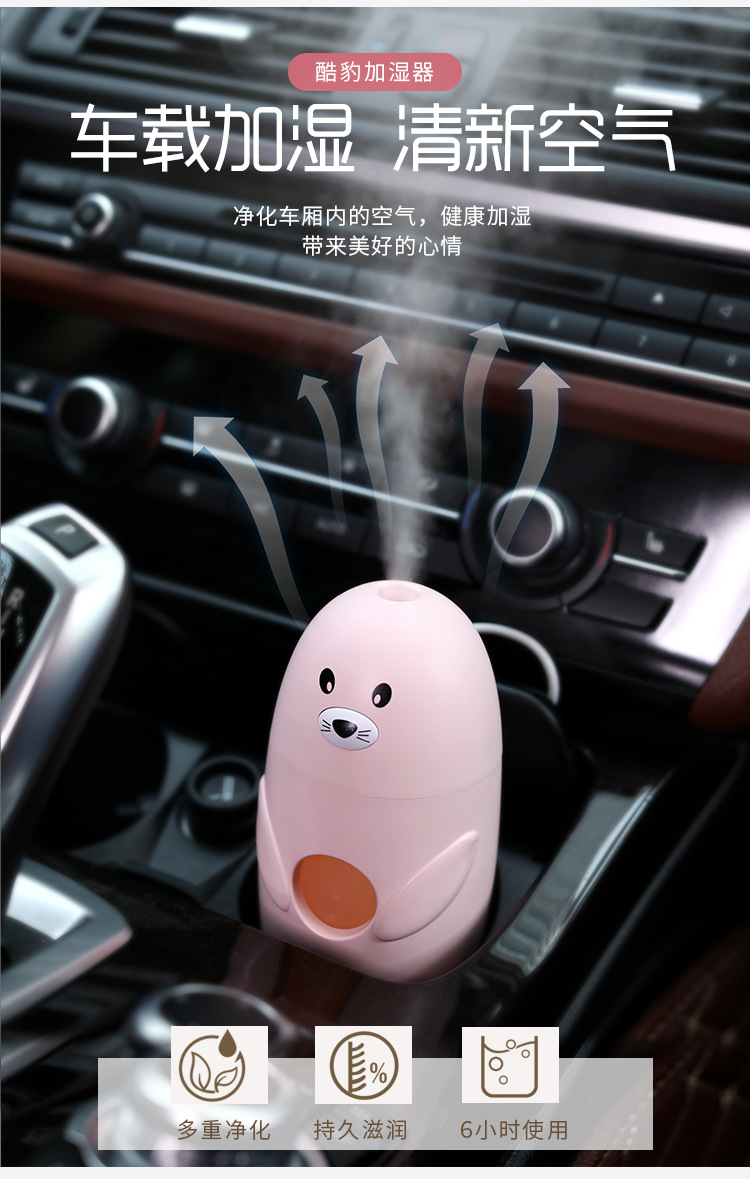 USB酷豹加湿器可爱卡通气氛夜灯车载办公家用儿童房喷雾加湿器
