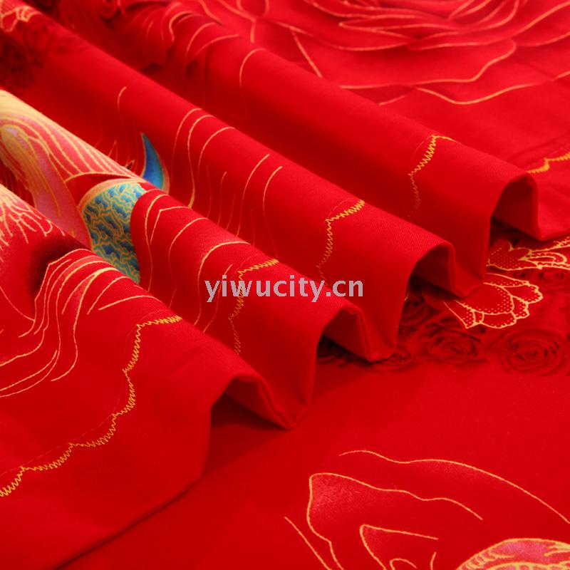 被里材质:棉颜色分类:恋上你日子, 情投意合001款, 天赐良缘, 稳稳的幸福- 001款, 我愿意- 001款,喜结龙凤, 喜上富贵 产品等级:合格品 风格:婚庆 面料密度:133*78 印花工艺:活性印花 织造工艺: