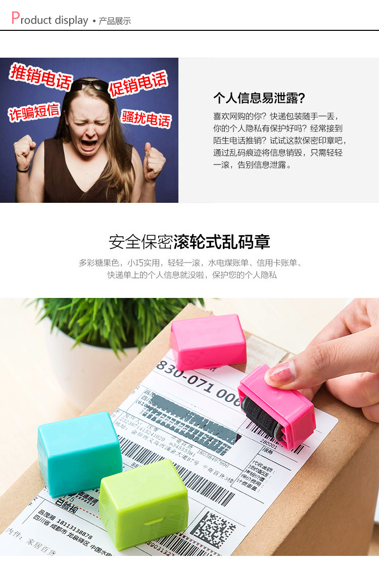 个人信息保护滚轮印章快递单涂抹隐私保密可用半年