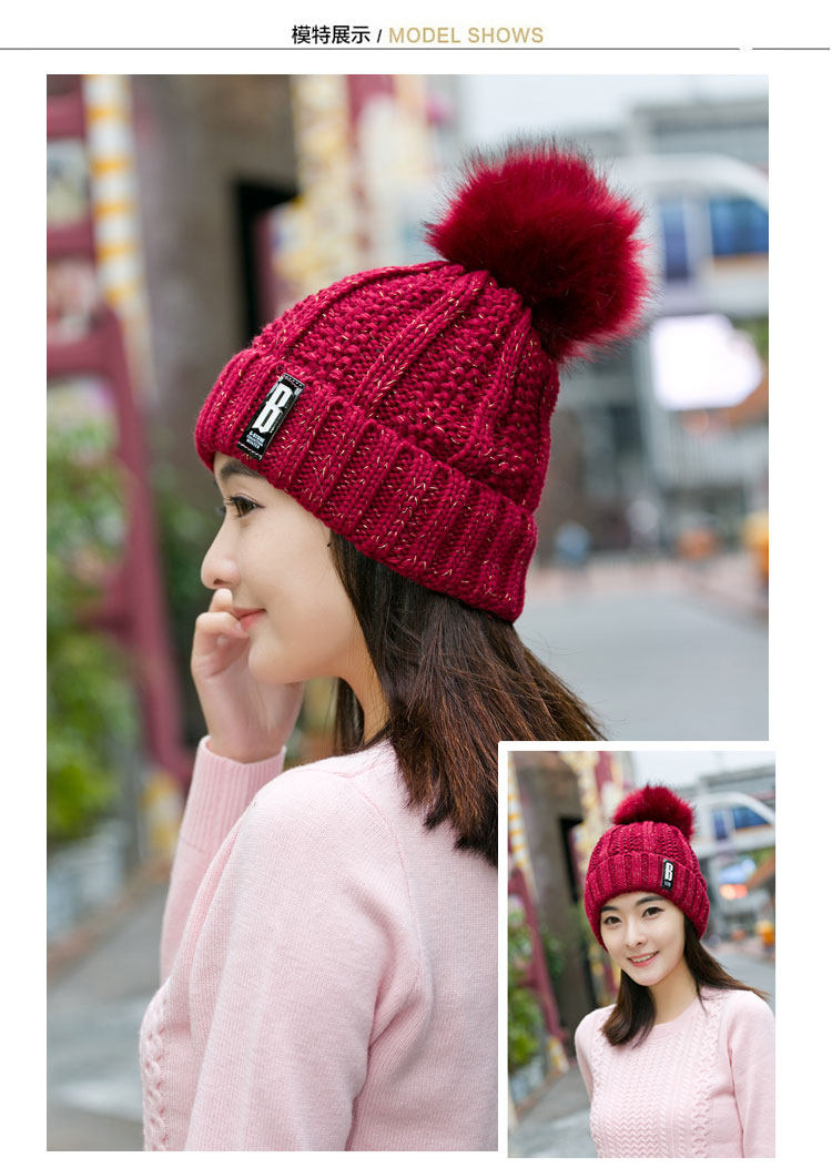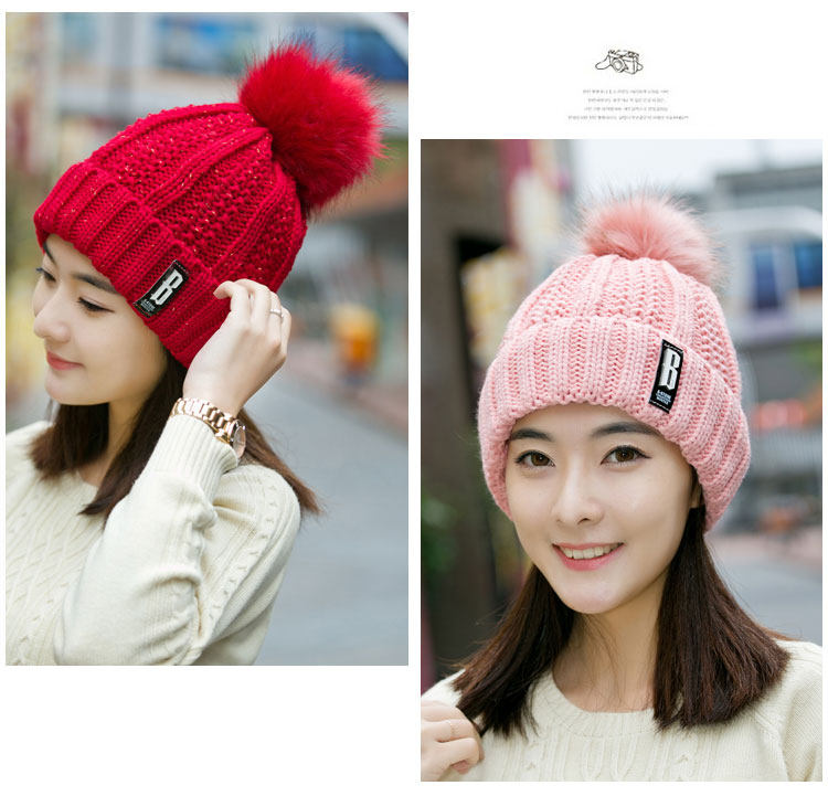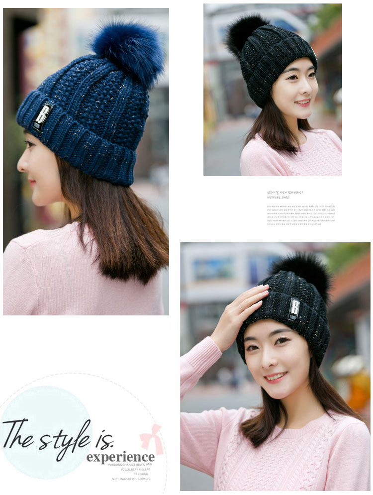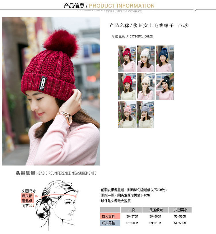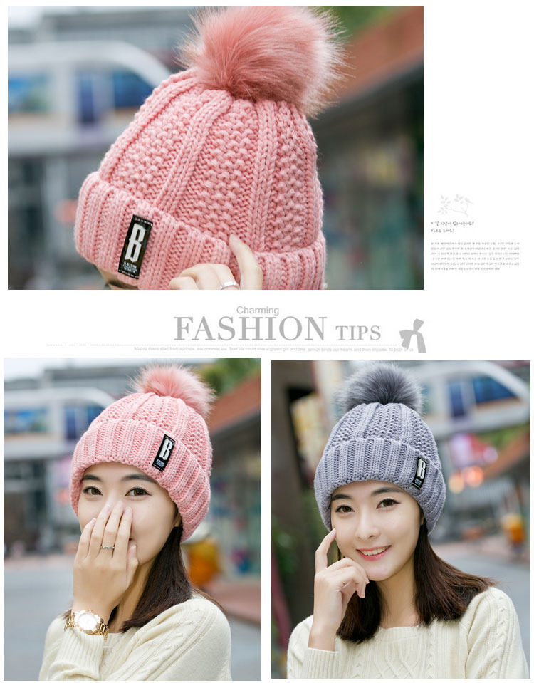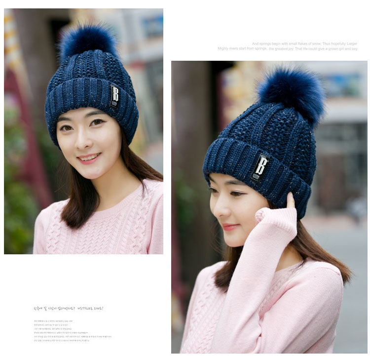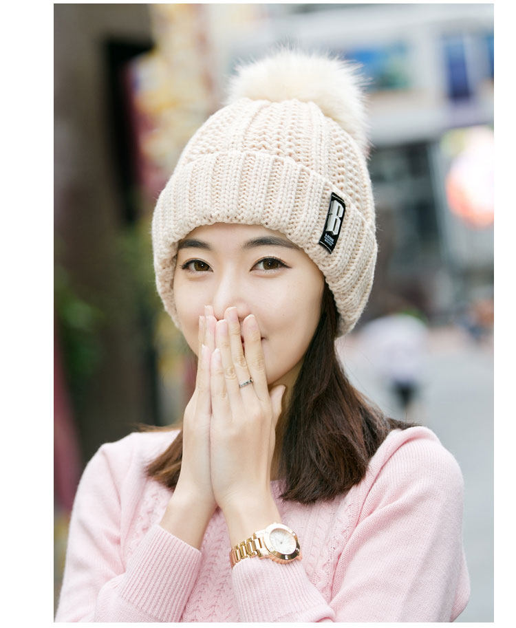 清杨世佳时尚保暖毛线帽冬季帽子女B标款可爱混色女帽子