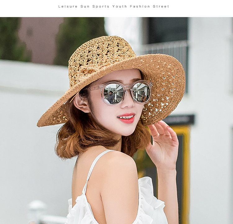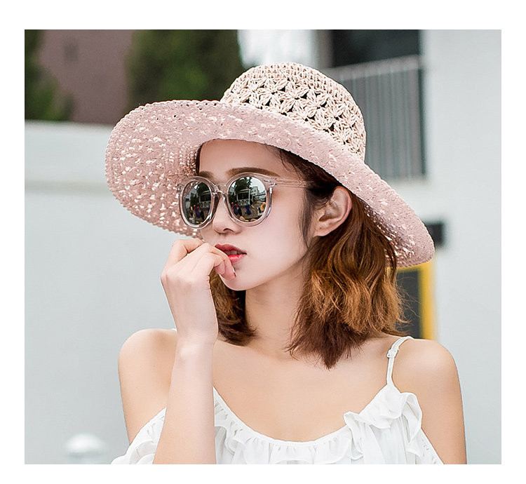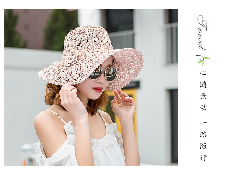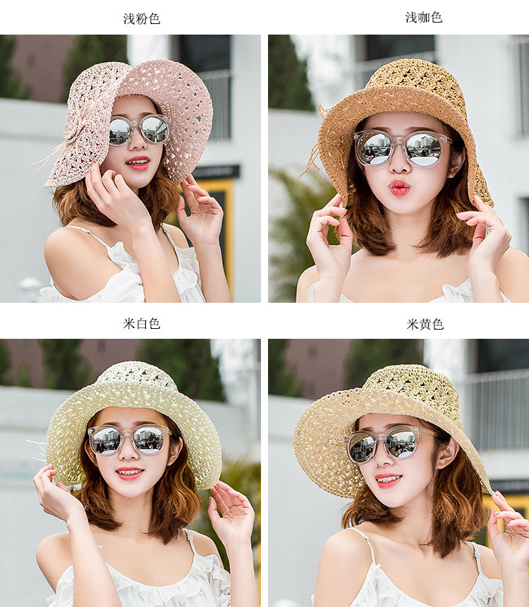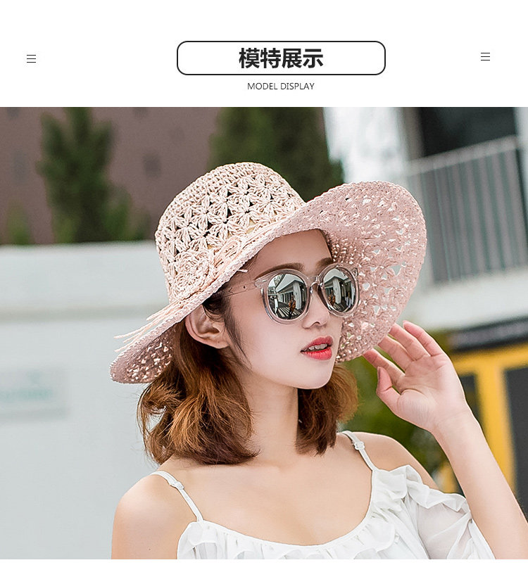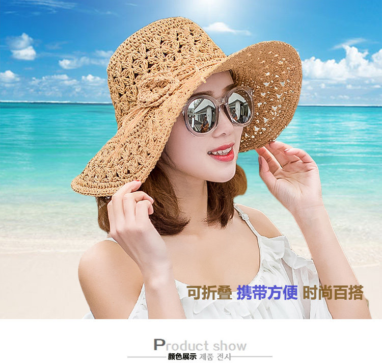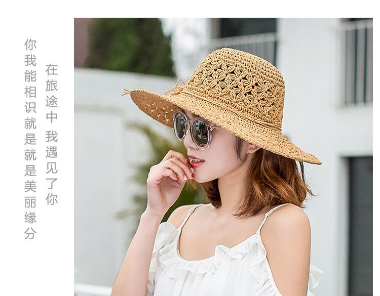 手工草帽女夏天大沿沙滩帽可折叠渔夫帽海边出游太阳帽防晒遮阳帽