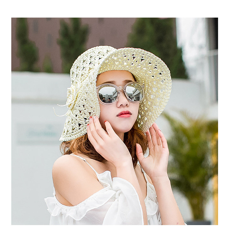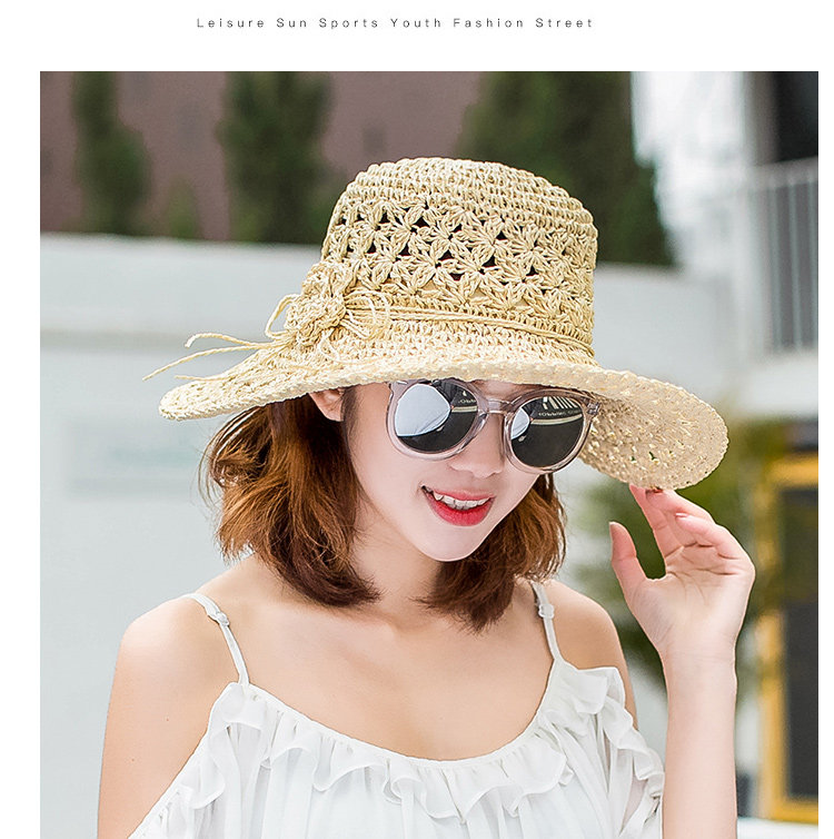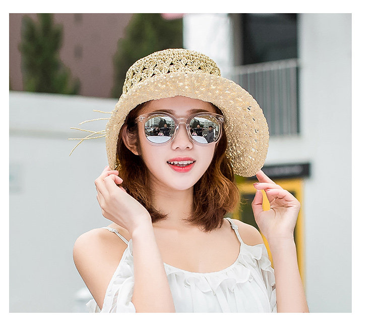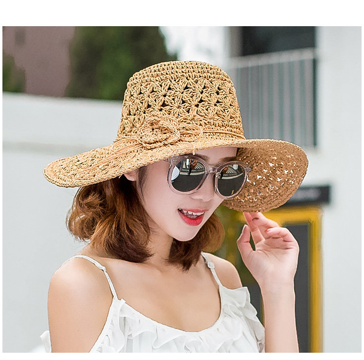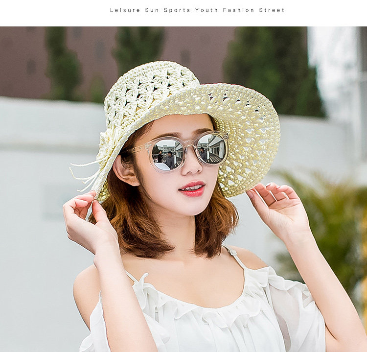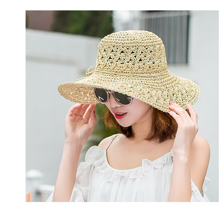 手工草帽女夏天大沿沙滩帽可折叠渔夫帽海边出游太阳帽防晒遮阳帽
