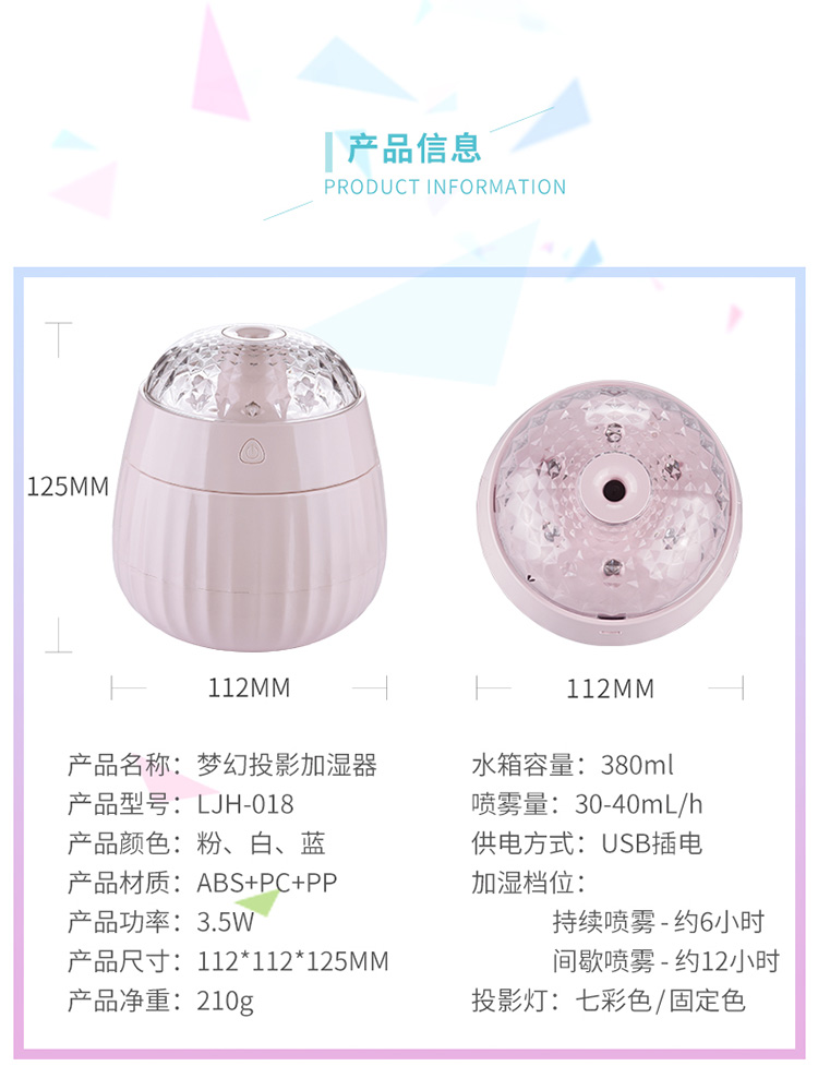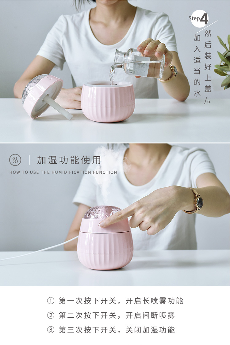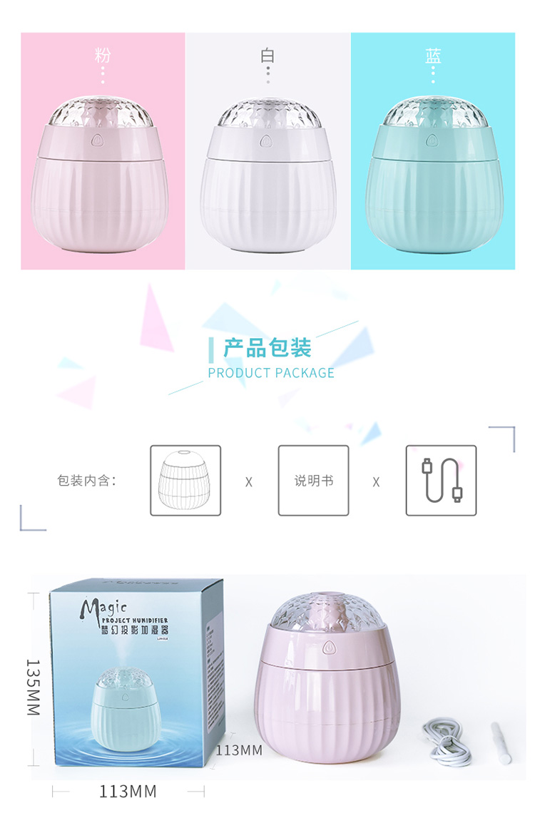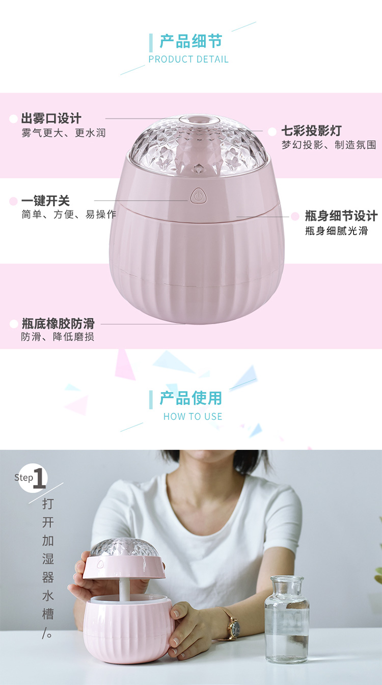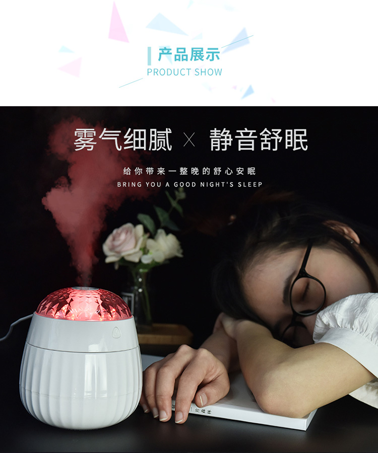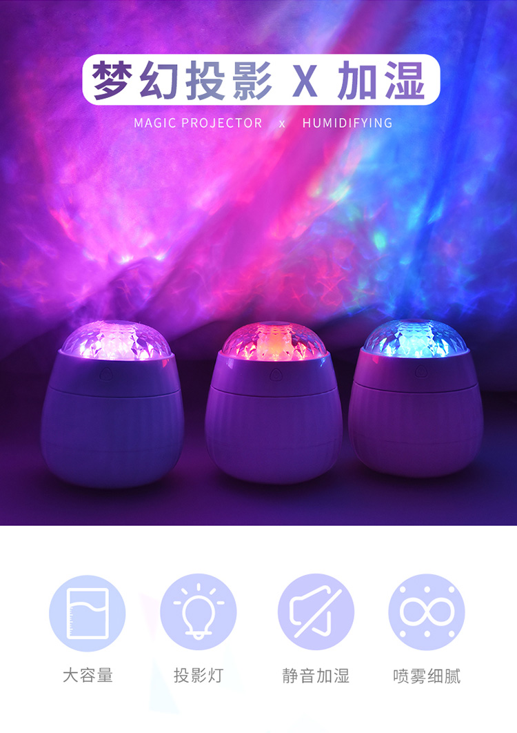 梦幻投影加湿器星空投影小夜灯车载加湿器氛围灯卧室床头七彩氛围