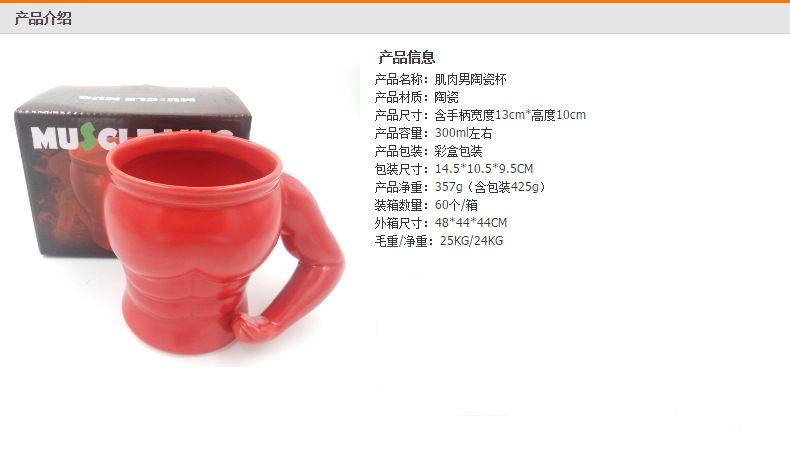 创意猛男肌肉男陶瓷马克杯 红色肌肉杯 Muscle Mug陶瓷杯