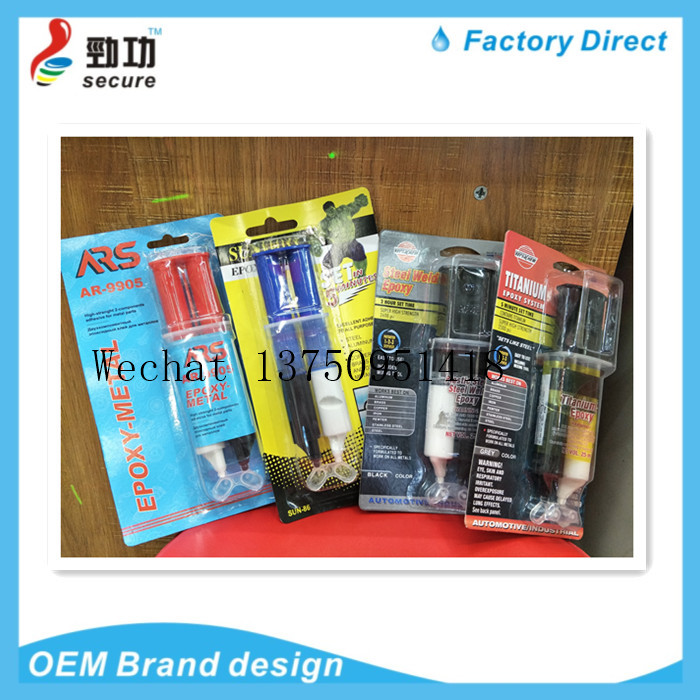 2、使用时将A、B组份1:1比例混合搅拌均匀,涂于被粘接物表面,贴合时尽量能作旋转吻合,5-10分钟胶液初固,1小时达到可使用强度,24小时达理想强度。在-60℃到100℃可以使用。(不可一次大量混合胶液)。