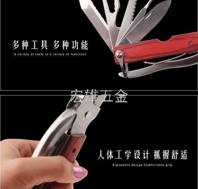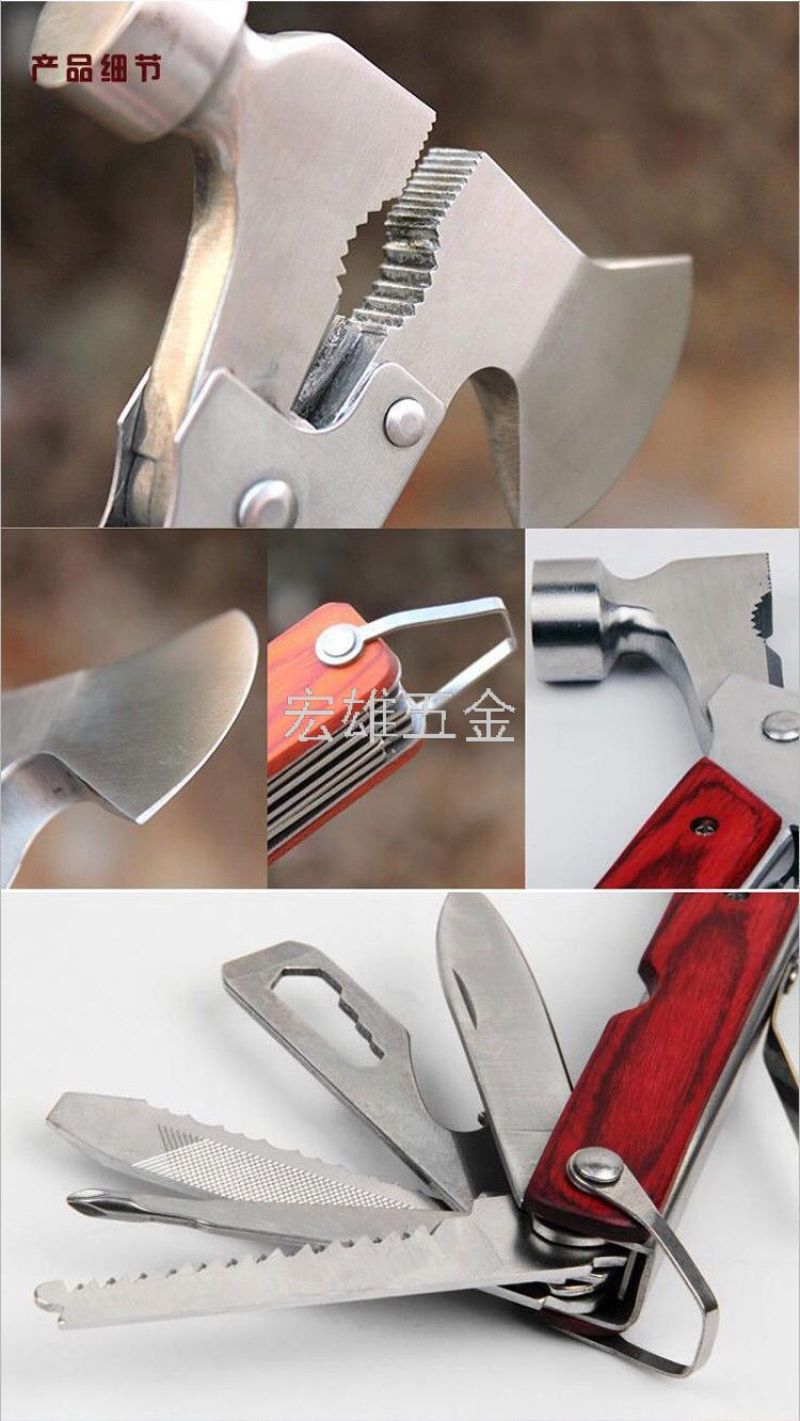 商品特点:采用优质不锈钢制做,经久耐用易携带。功能全面,设计精巧,拥有它放佛就拥有一个万能的工具箱,需要它时像变魔术一样组合出各种应用,是户外最理想的装备。采用高品质的不锈钢材质精心制作而成,坚固耐用。不用时随时收缩放进口袋、背包,体积精巧,是野外野营、探险最实用、最方便的工具。