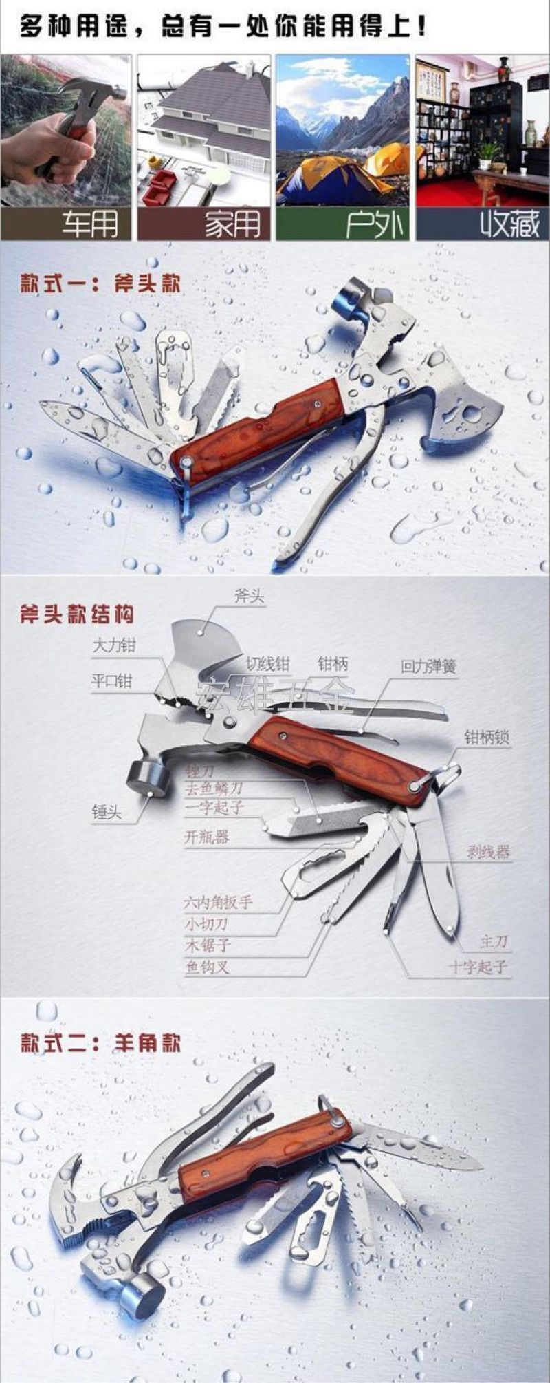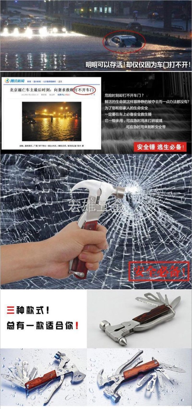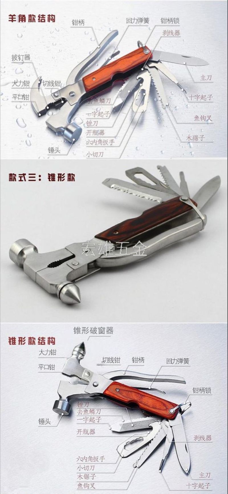 彩木羊角锤 多功能斧锤 汽车安全斧锤 户外多功能斧