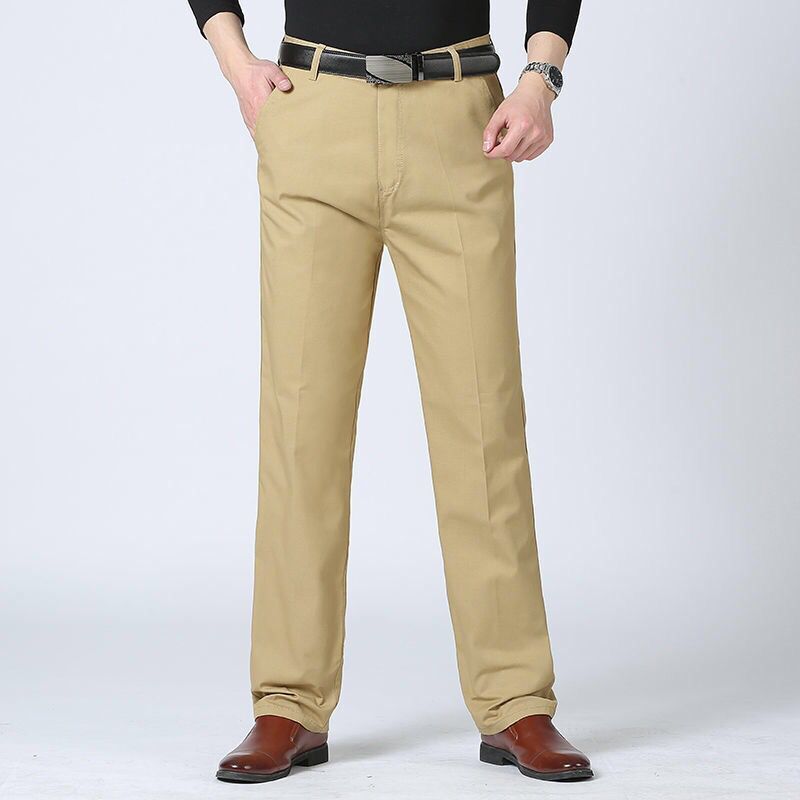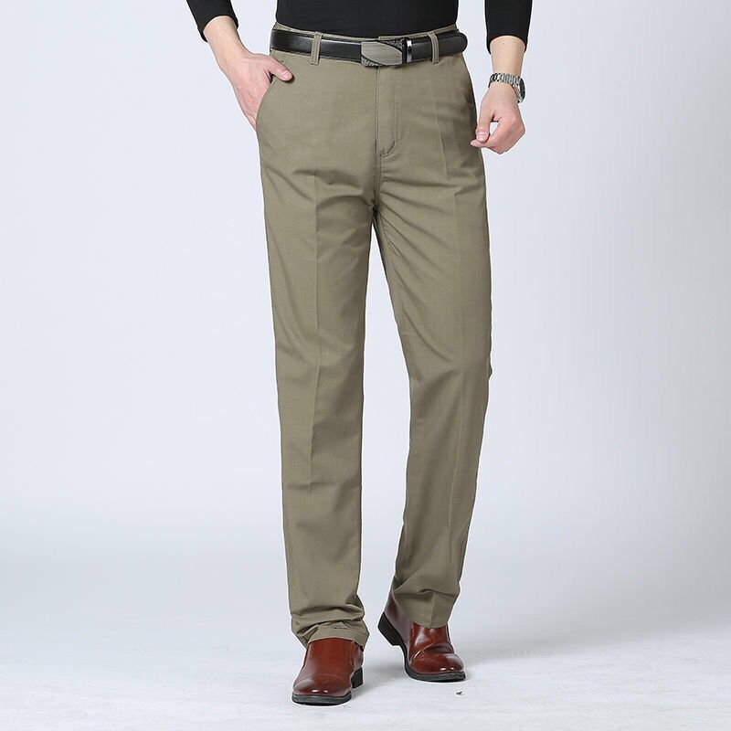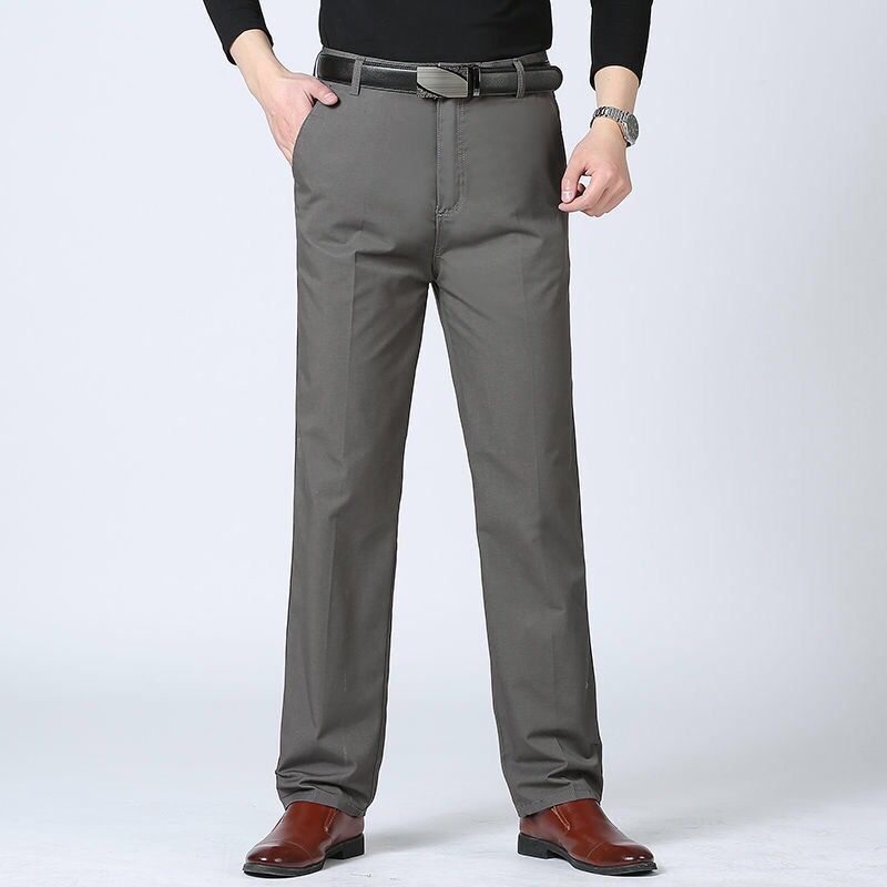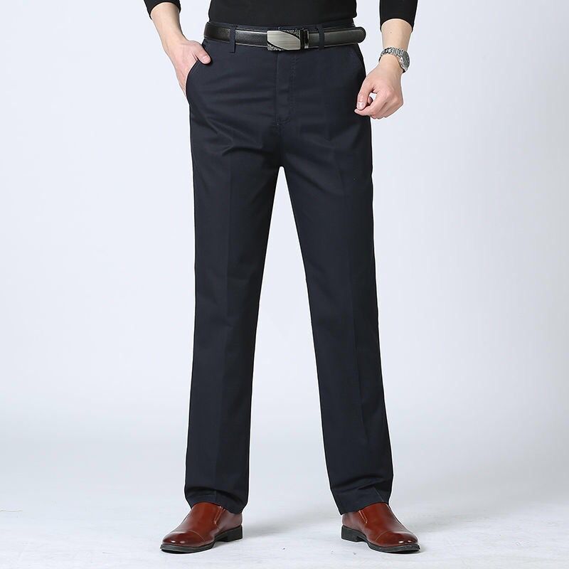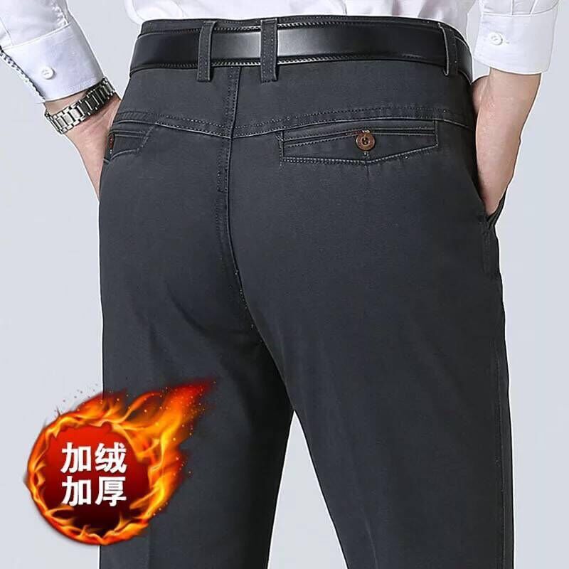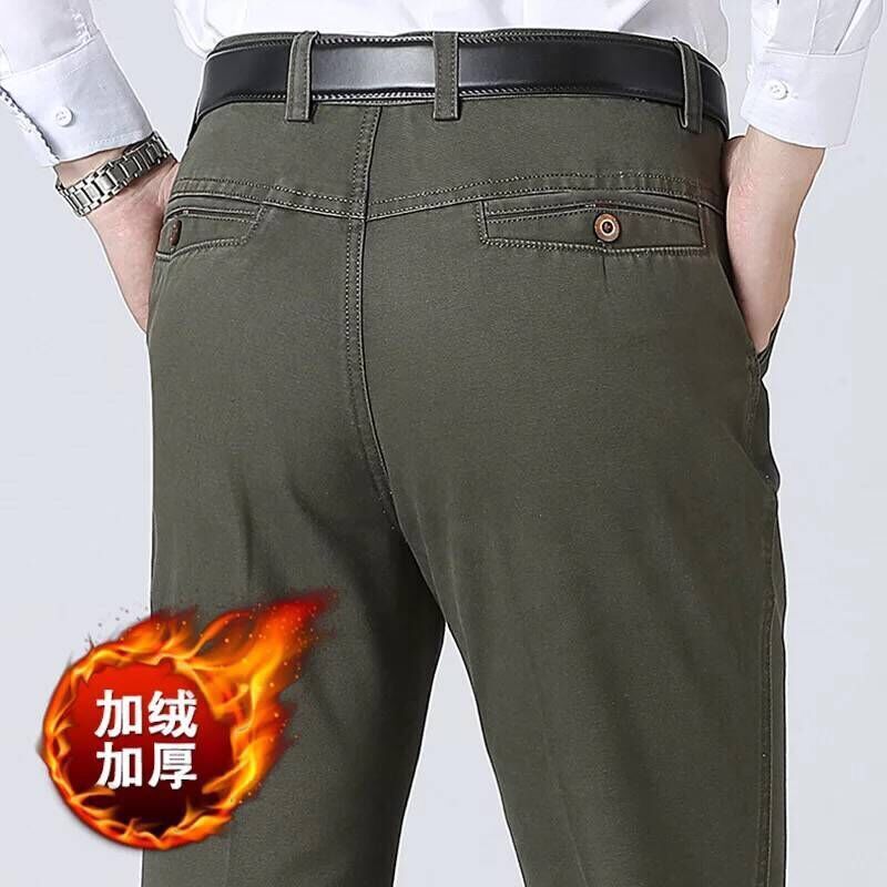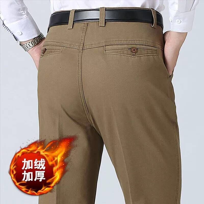 秋冬款男士中老年商务休闲裤高腰直筒长裤中年纯棉爸爸工装男裤子