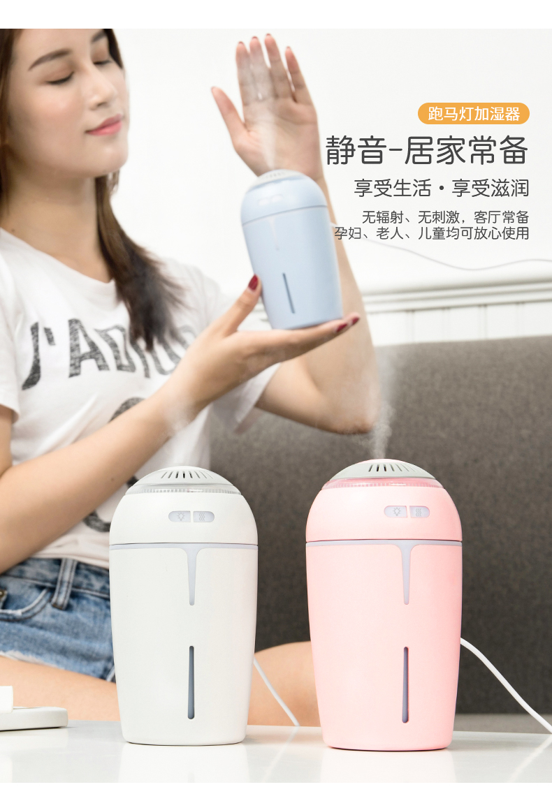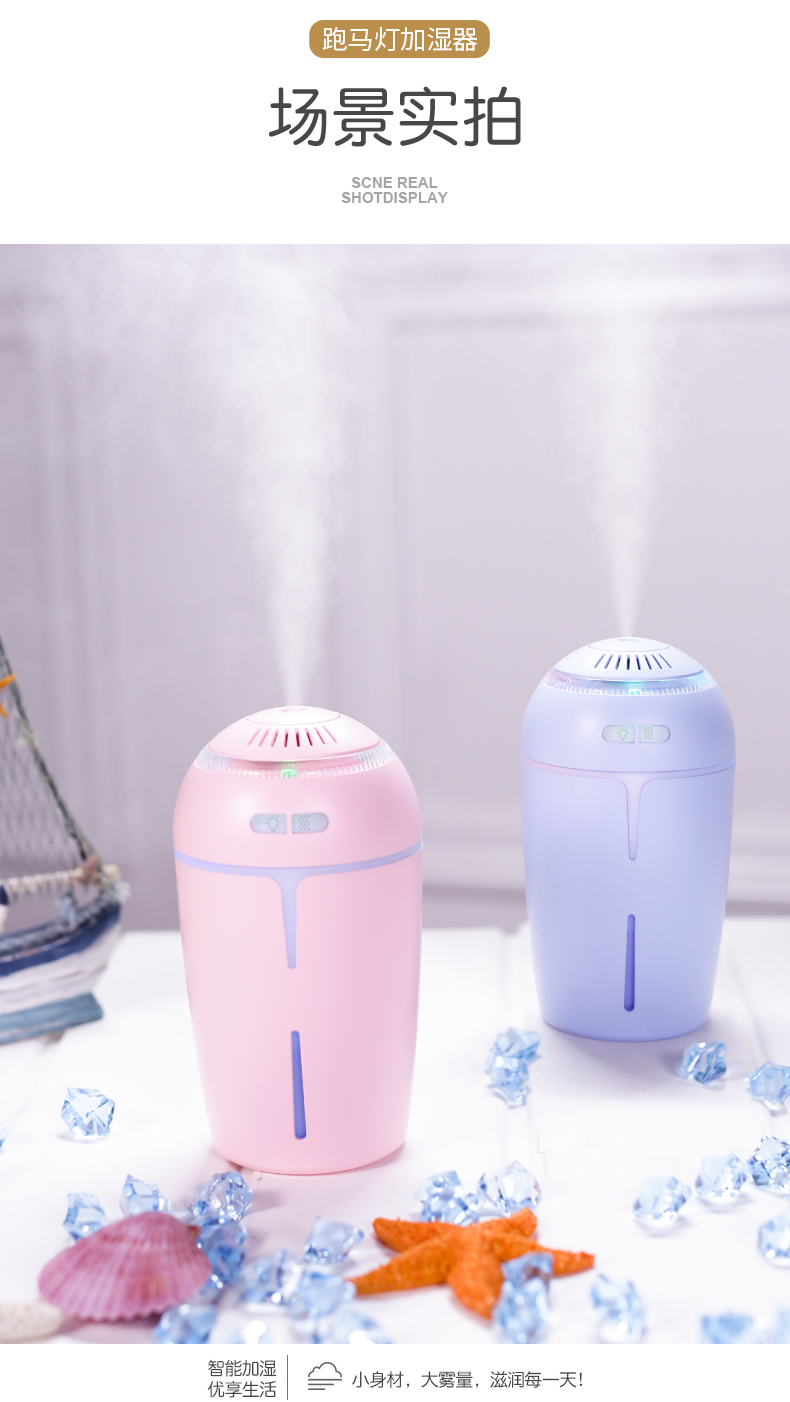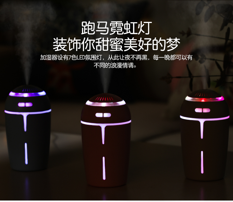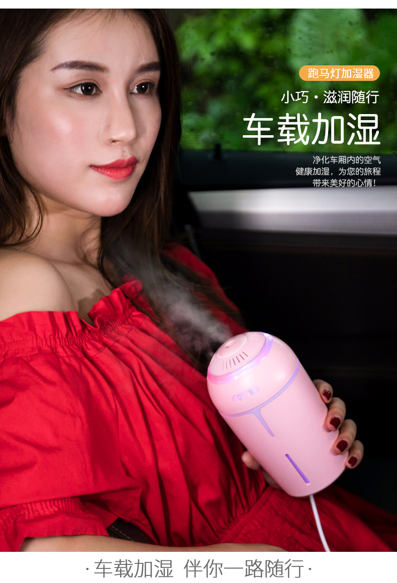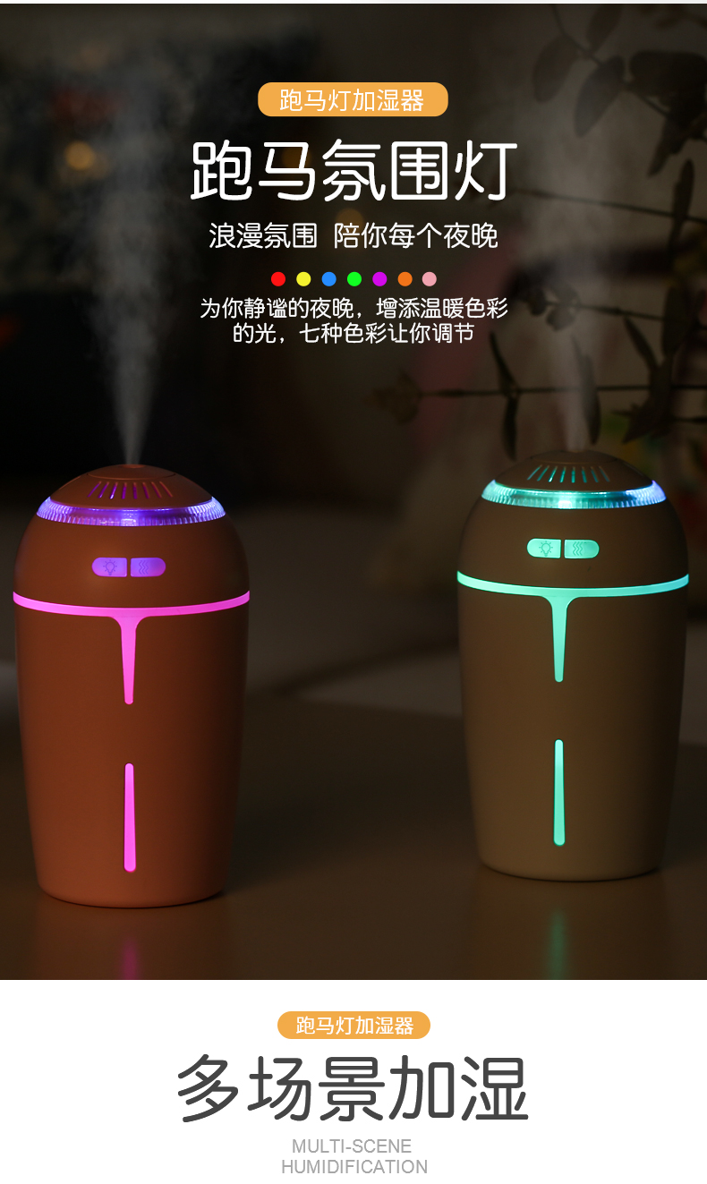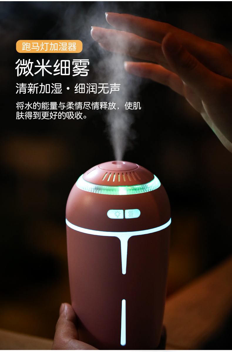 新款跑马灯多功能加湿器USB跑马霓虹灯车载桌面室内空气静音加湿